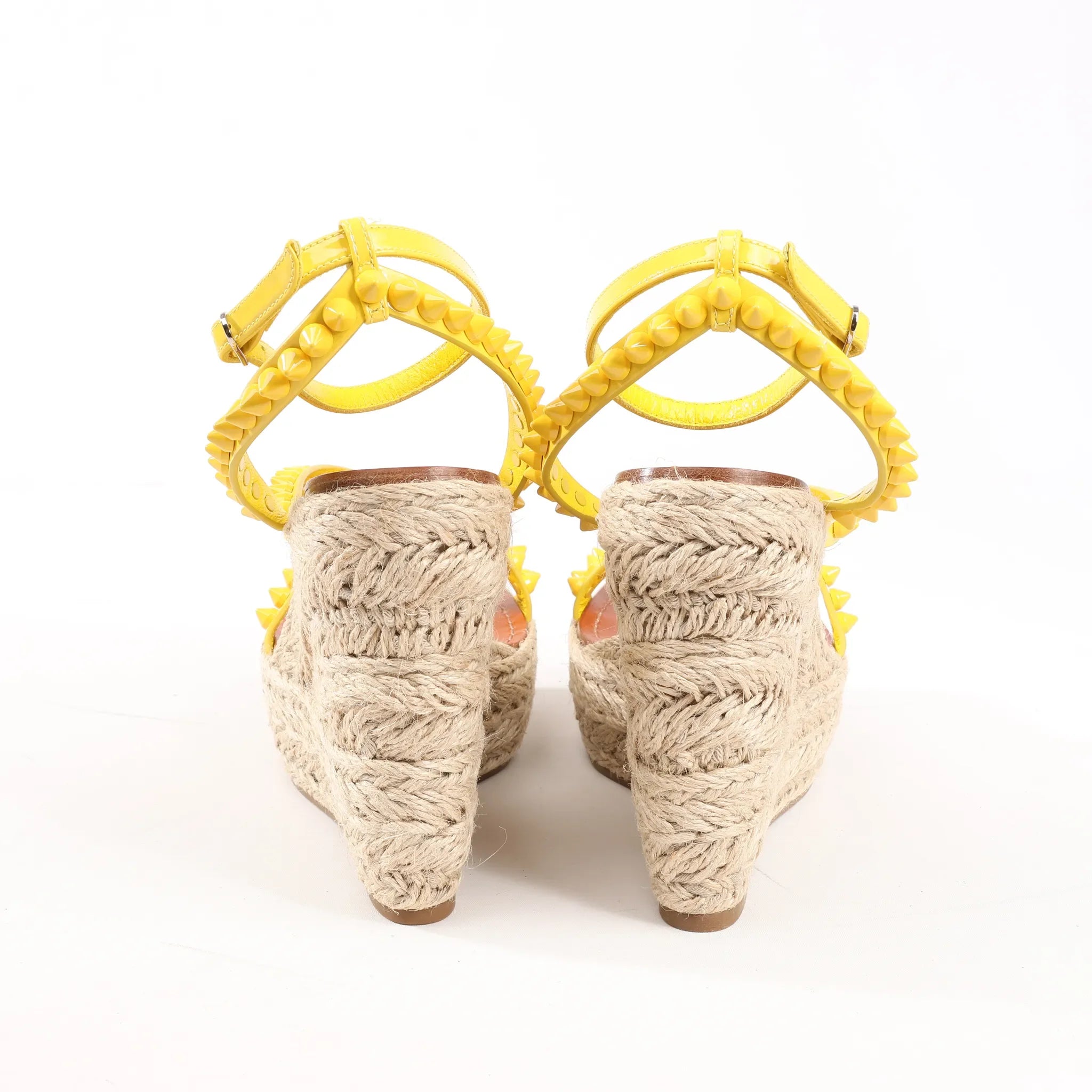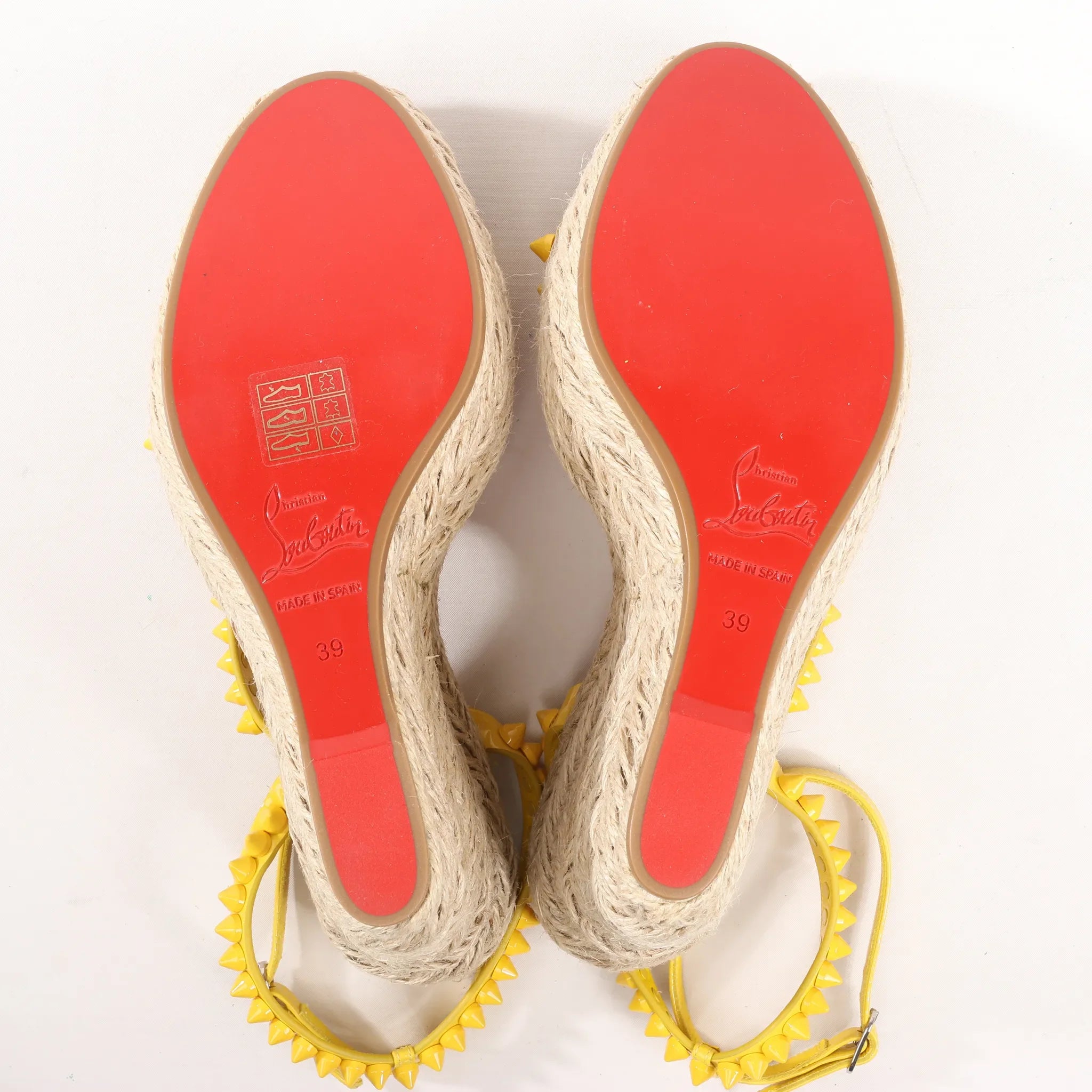 Christian Louboutin MAFALDINA ZEPPA Patent Leather Spike Studs Wedge Sole Espadrilles Sandals in Yellow, Size 39 EU