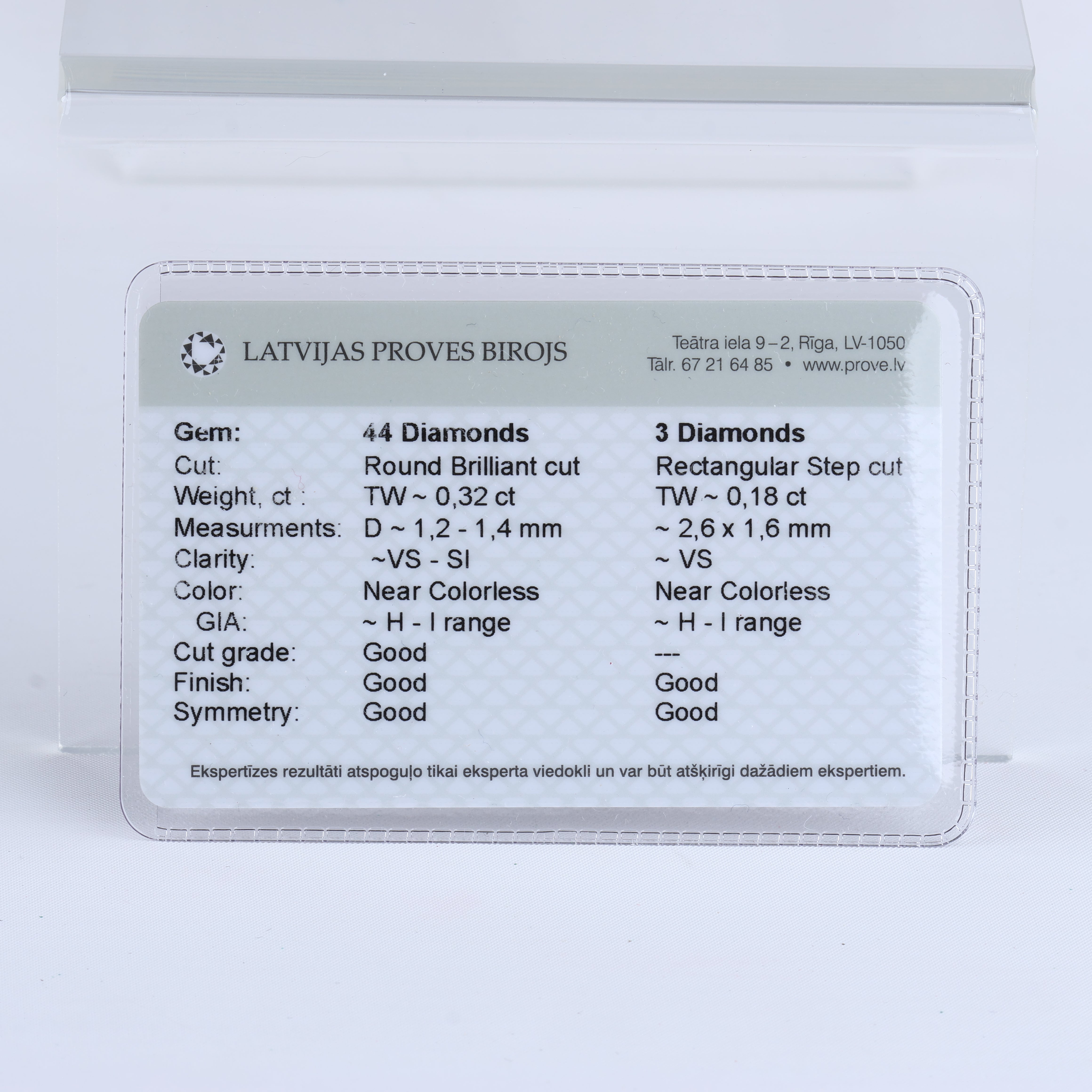 18 carat gold ring set with 47 natural diamonds. Please see photos of quality certificates from Latvia Assay Office for more detailed information.