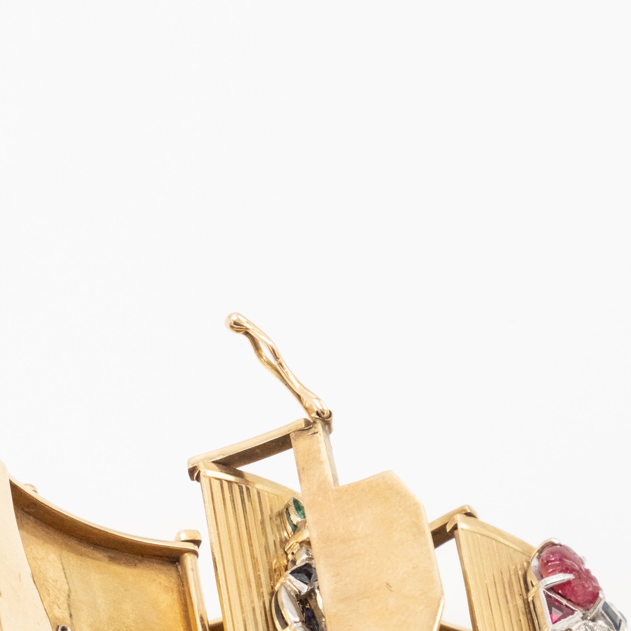 Extraordinary French Gold Bracelet with Gem-Set Panels - '40s