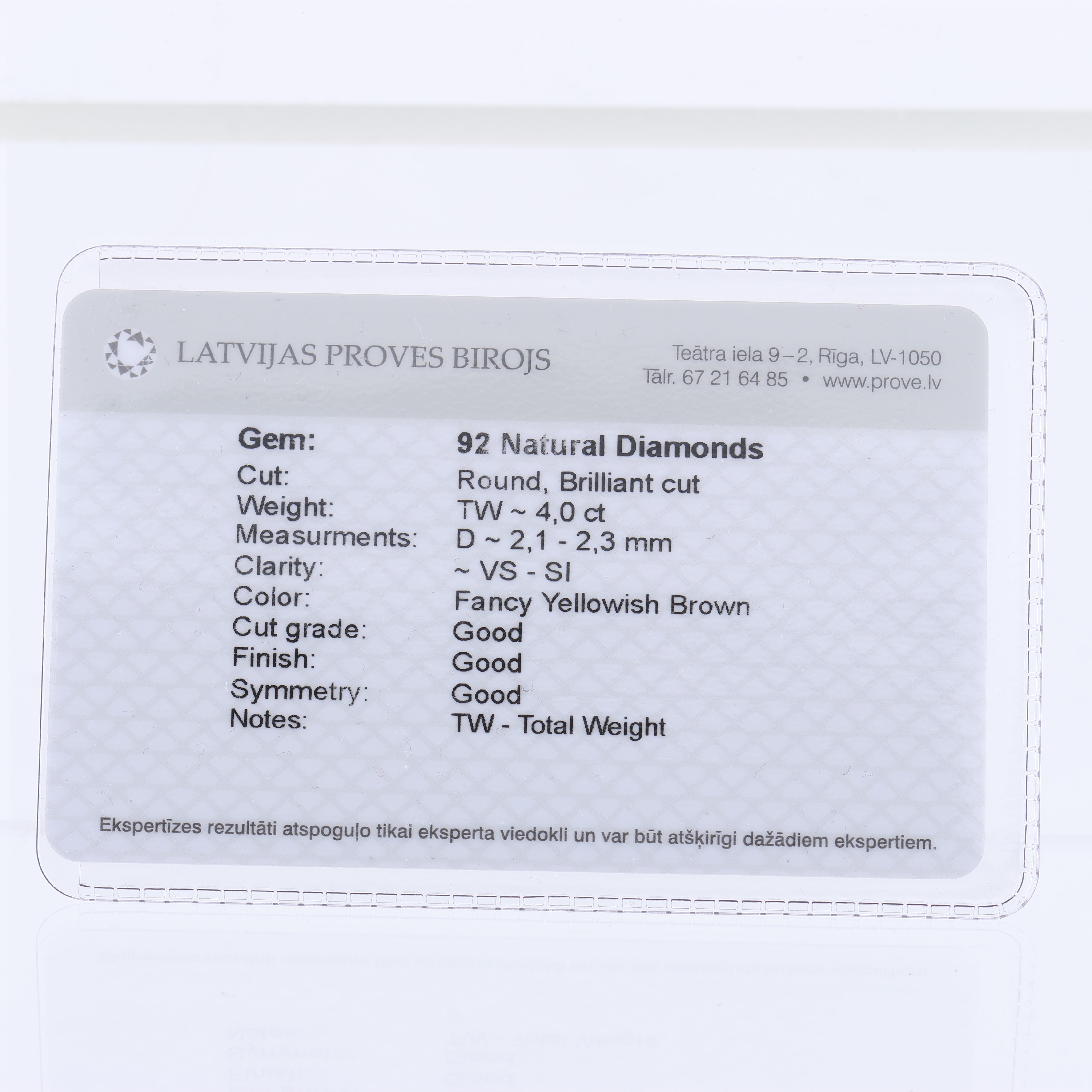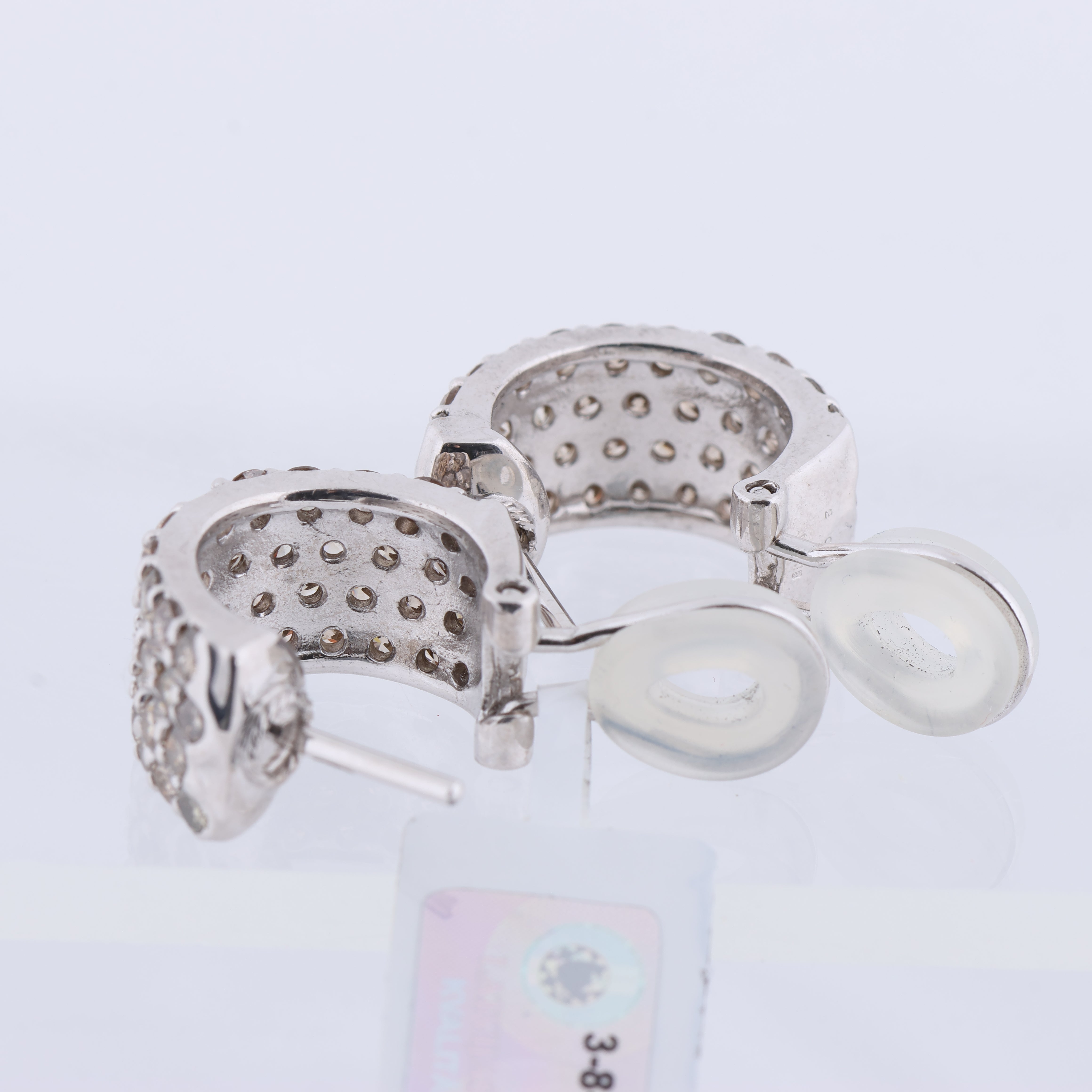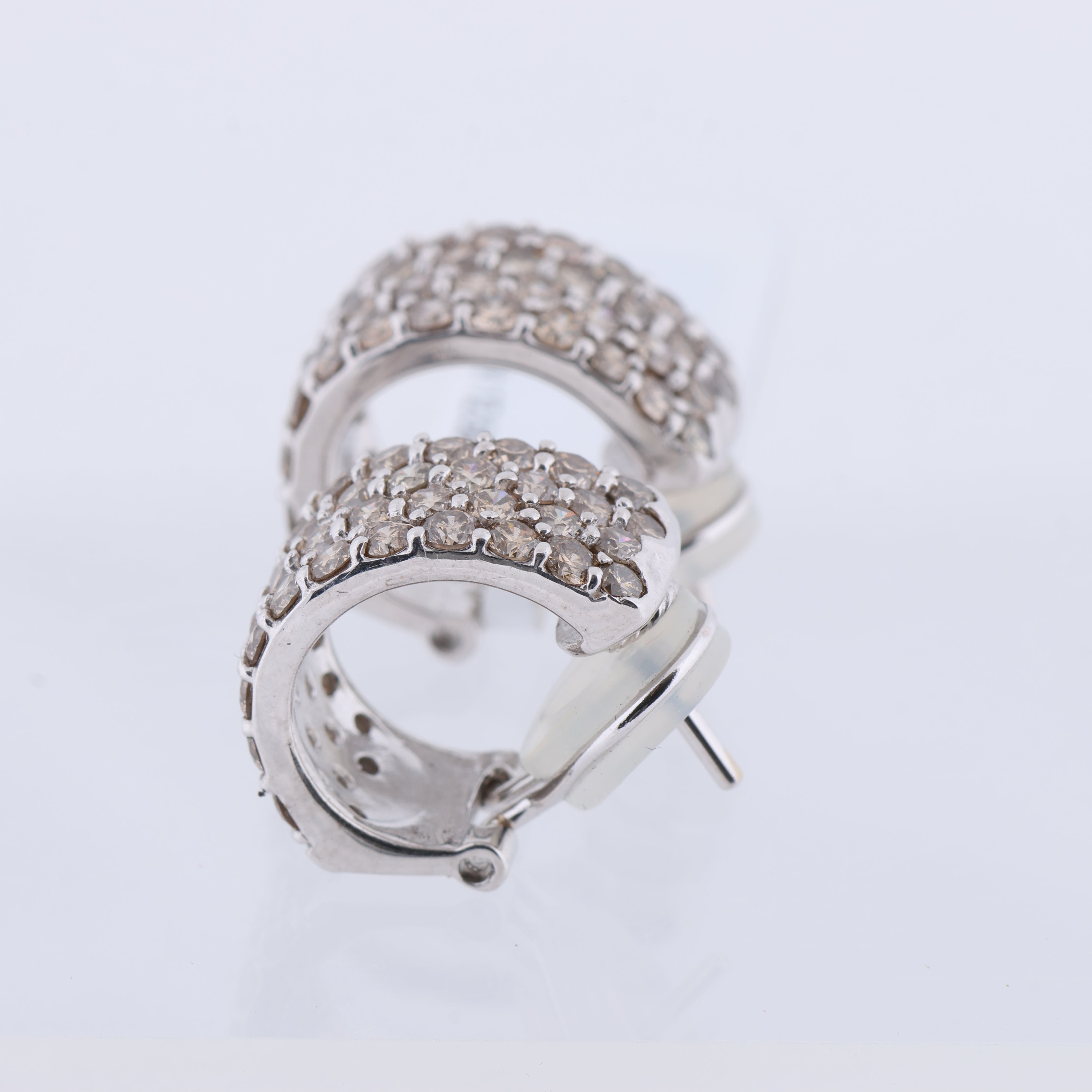 Indulge in luxury with these exquisite 18K/14K white gold earrings featuring 92 natural diamonds (4.0ct total). The brilliant-cut stones showcase a stunning fancy yellowish-brown hue, exceptional clarity (VS-SI), and unmatched elegance. Perfect for elevating any look!