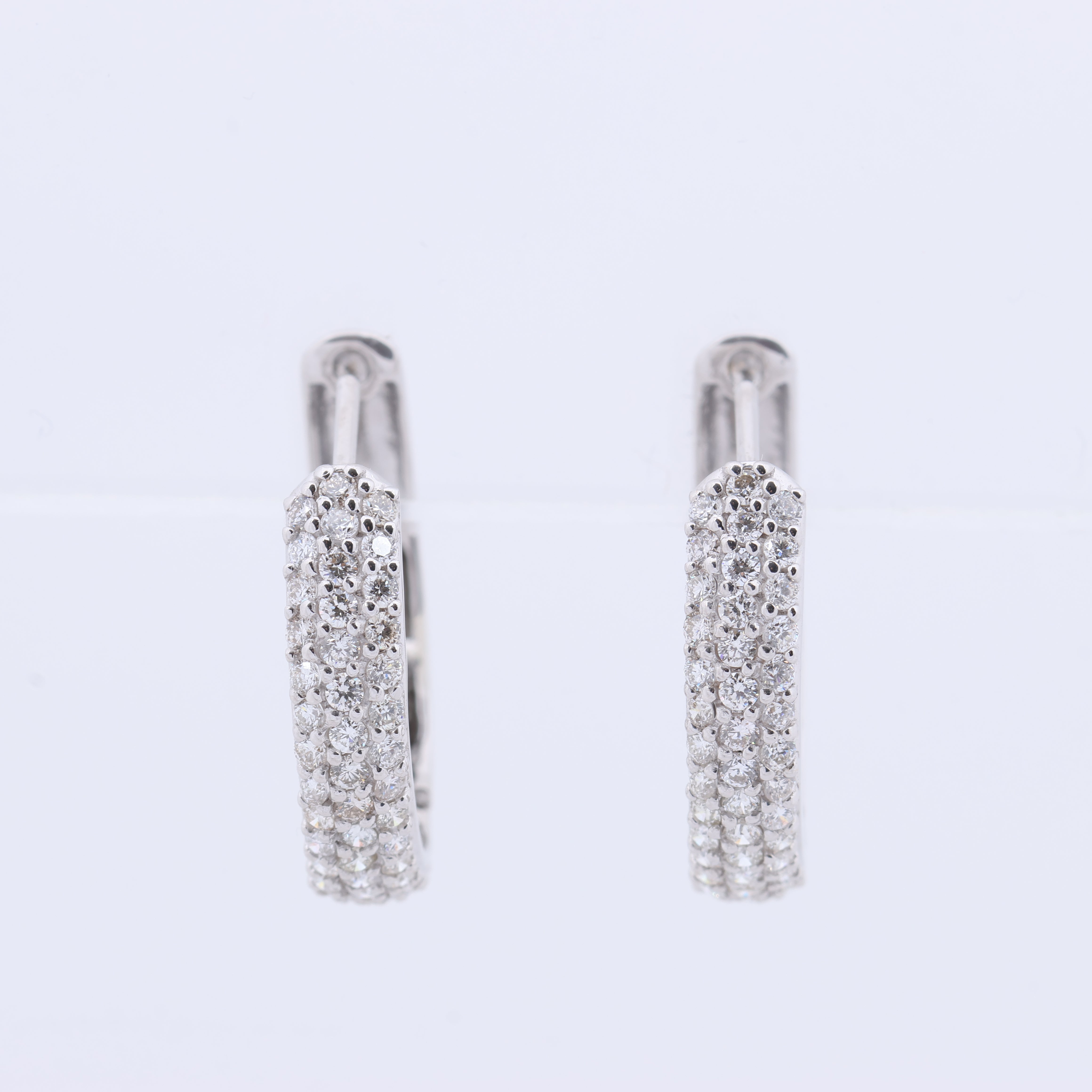 Elegant Collection Privée Diamond Earrings in 18K white gold (4.4g), featuring 104 brilliant-cut diamonds with a total weight of ~1.0 ct, near colorless G-H grade, and VS-SI clarity for a refined sparkle.