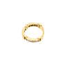 Timeless and refined, this vintage ring is crafted in 18K yellow gold and weighs 4.8 grams. A continuous row of square-cut white diamonds is channel-set around the band, creating a sleek, modernist aesthetic. The geometric design and open gallery structure give this piece a clean and architectural appeal, perfect for stacking or wearing solo.
