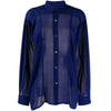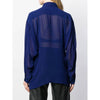 Blue semitrasparent silk crepe long-sleeves silk Comme des Garcons shirt. Classic collar and loose fit. Front buttons fastening and buttoned cuffs.