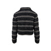Chanel 90s black and white jacket with a woven design. Cropped style with collar, long sleeves, two front pockets decorated with CC buttons and silk lining.