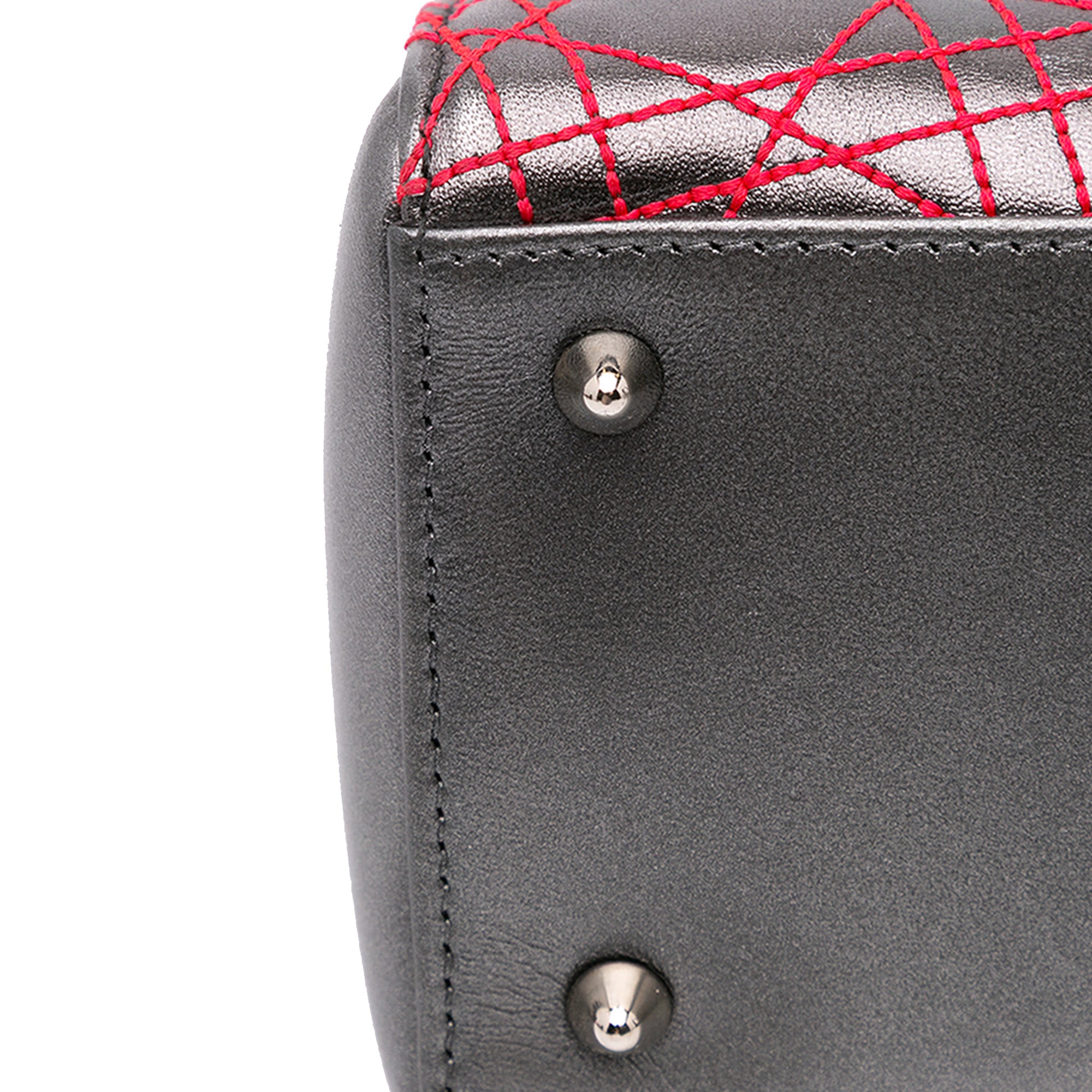 This satchel features a quilted metallic lambskin leather body, structured leather handles, a detachable flat leather strap, a top zip closure, and an interior zip pocket. Retail Price: 4500.00
