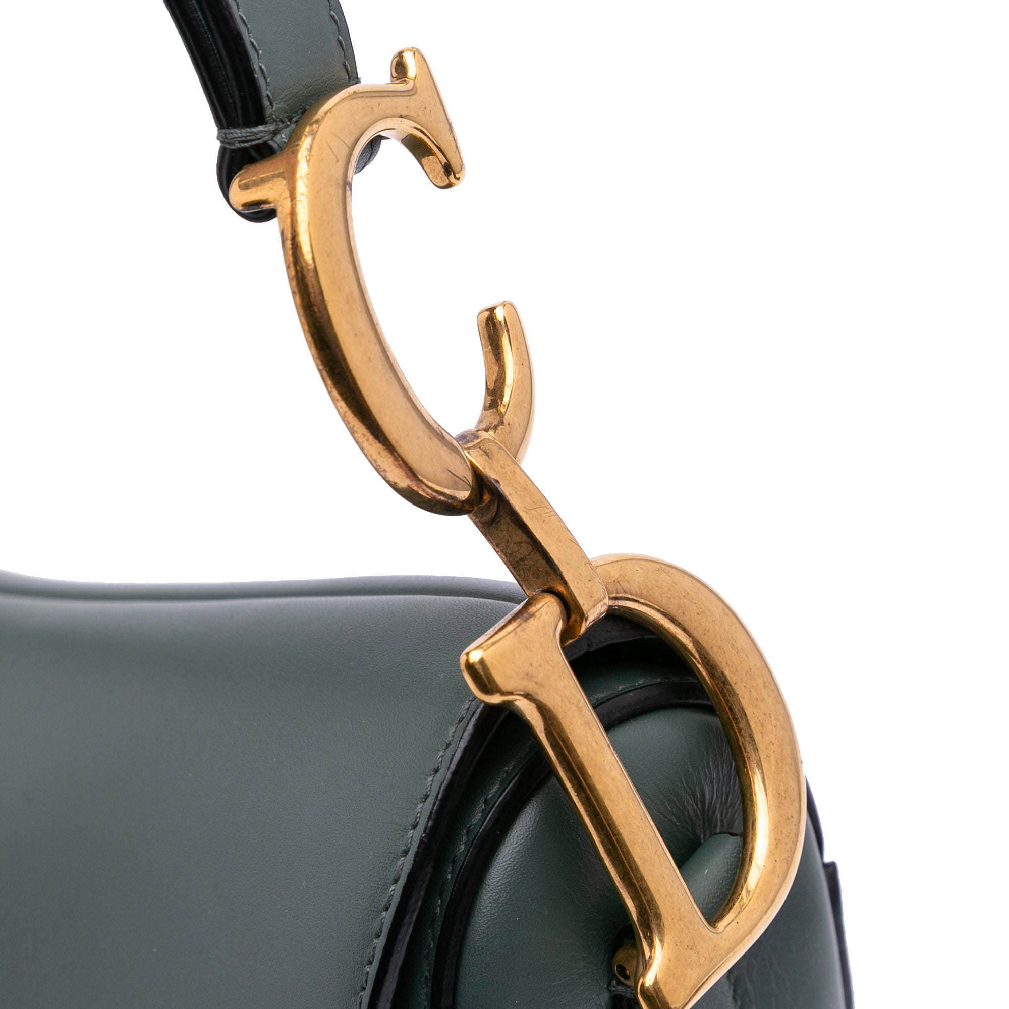 The Saddle bag features a leather body, a flat leather shoulder strap, a front flap with a magnetic closure, an exterior back slip pocket, and an interior zip pocket. Inclusion: authenticity card. Retail Price: 4400.00