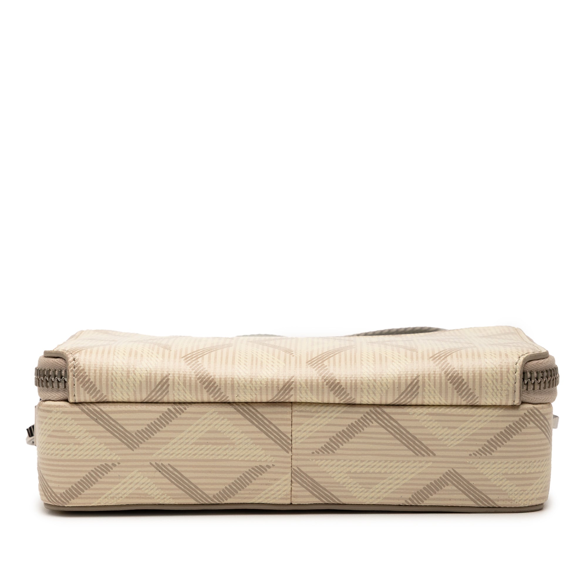 This crossbody bag features a coated canvas body, a flat shoulder strap, dual top zip closures, and interior slip pockets. Inclusion: Dust bag. Retail Price: 1650.00