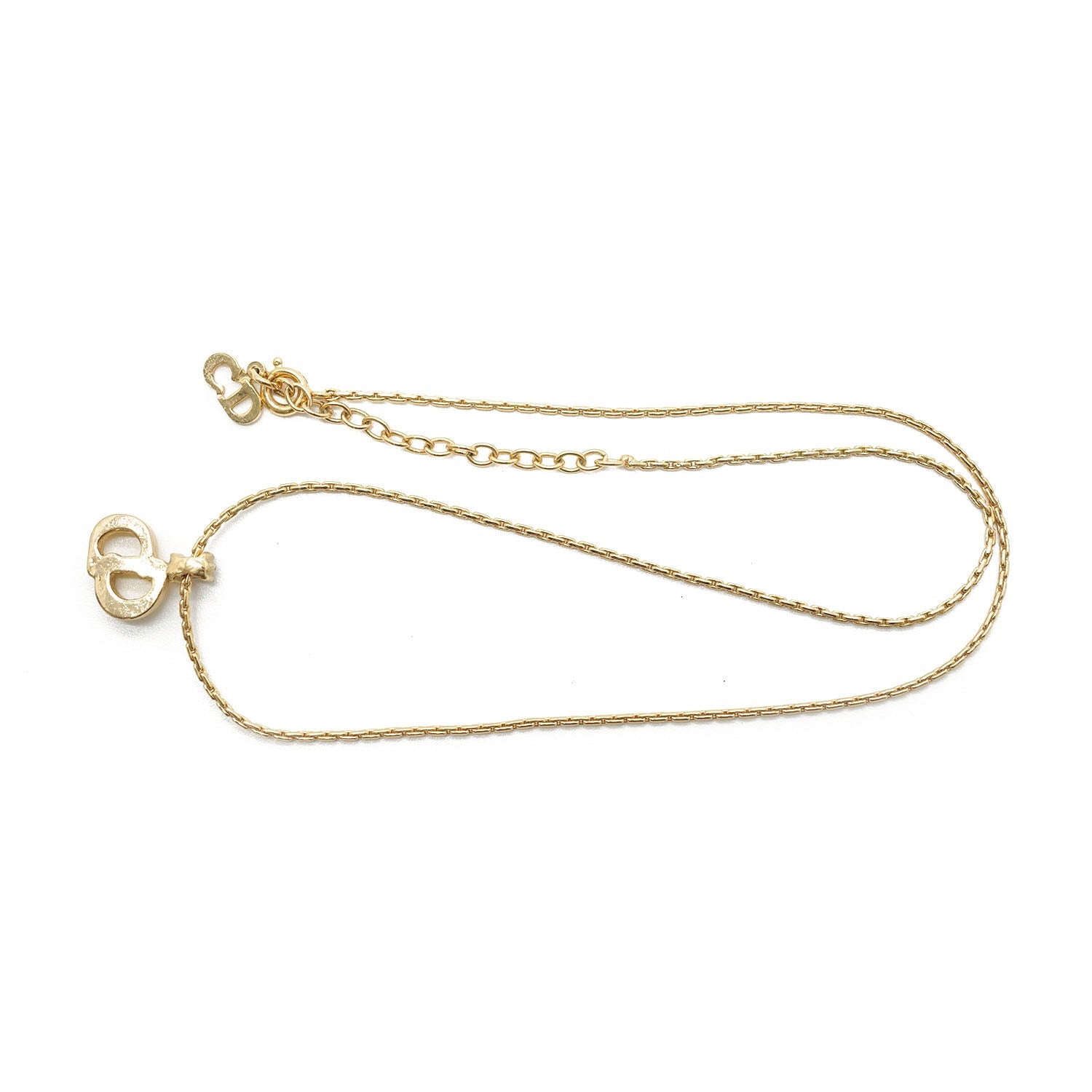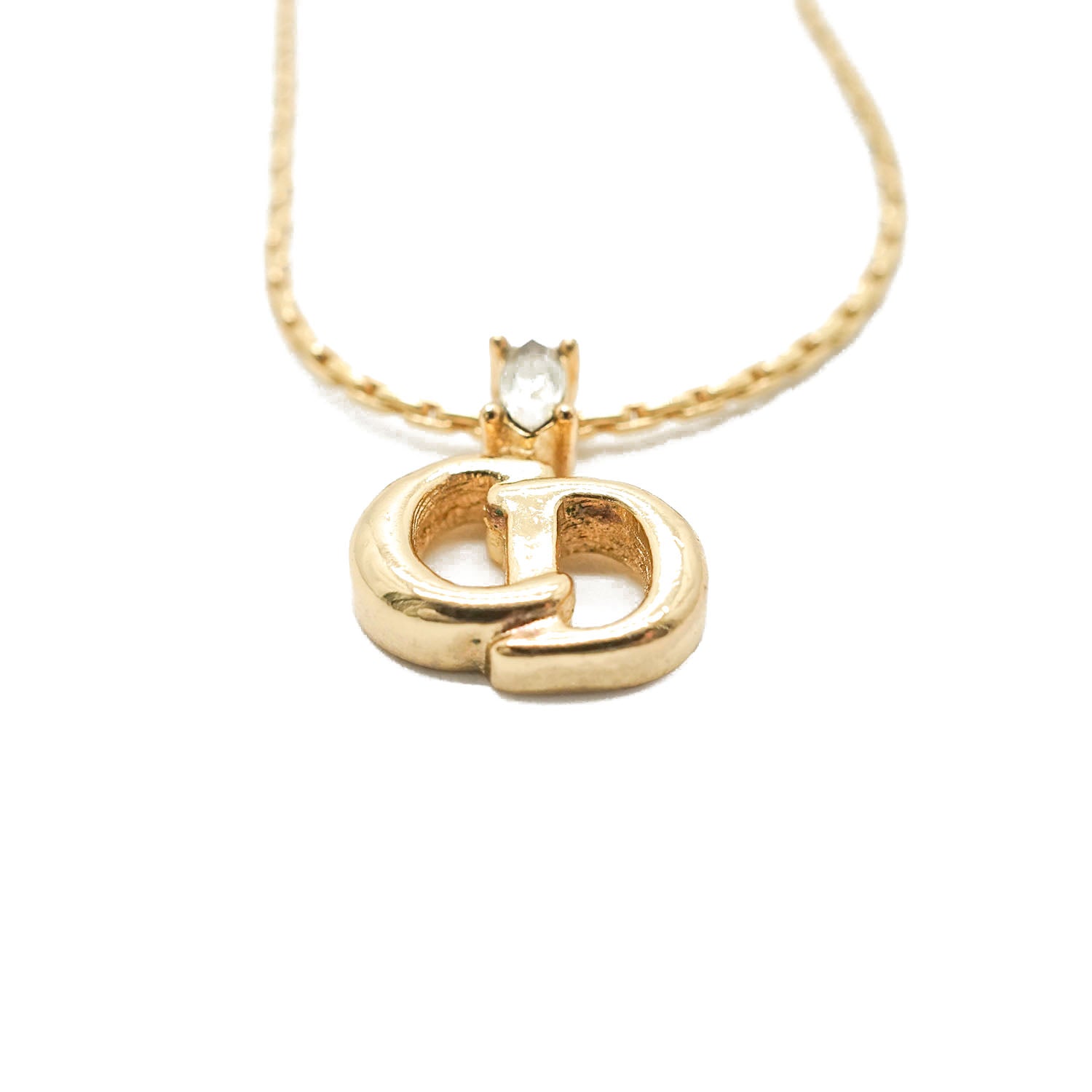 CD Logo Rhinestone Necklace Gold BrassHeight: 21.5cmWidth: 1.2cmDiscoloration: Slight tarnishScratch: Slight scratchesWorn: Minor signs of wearSKU: 6120049
