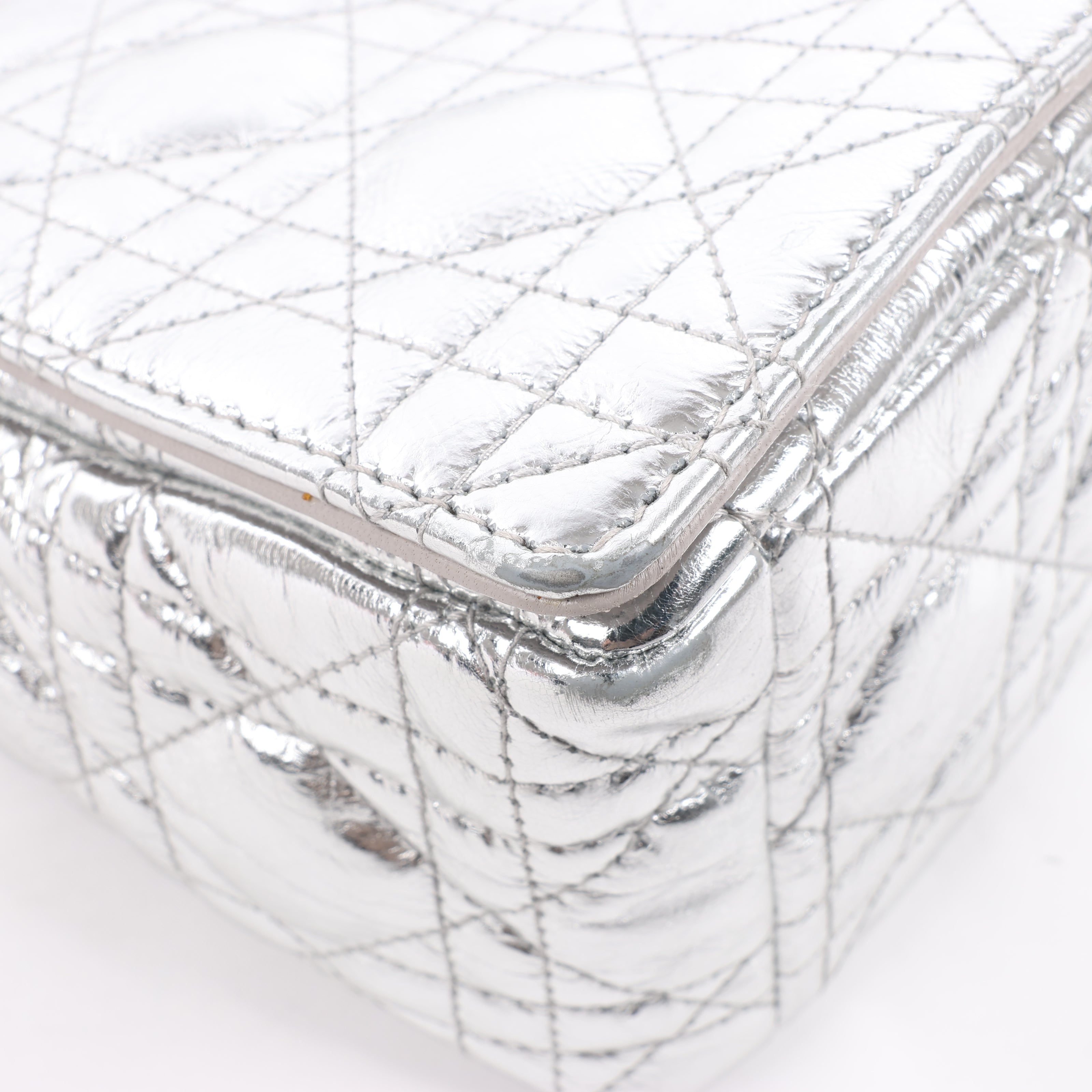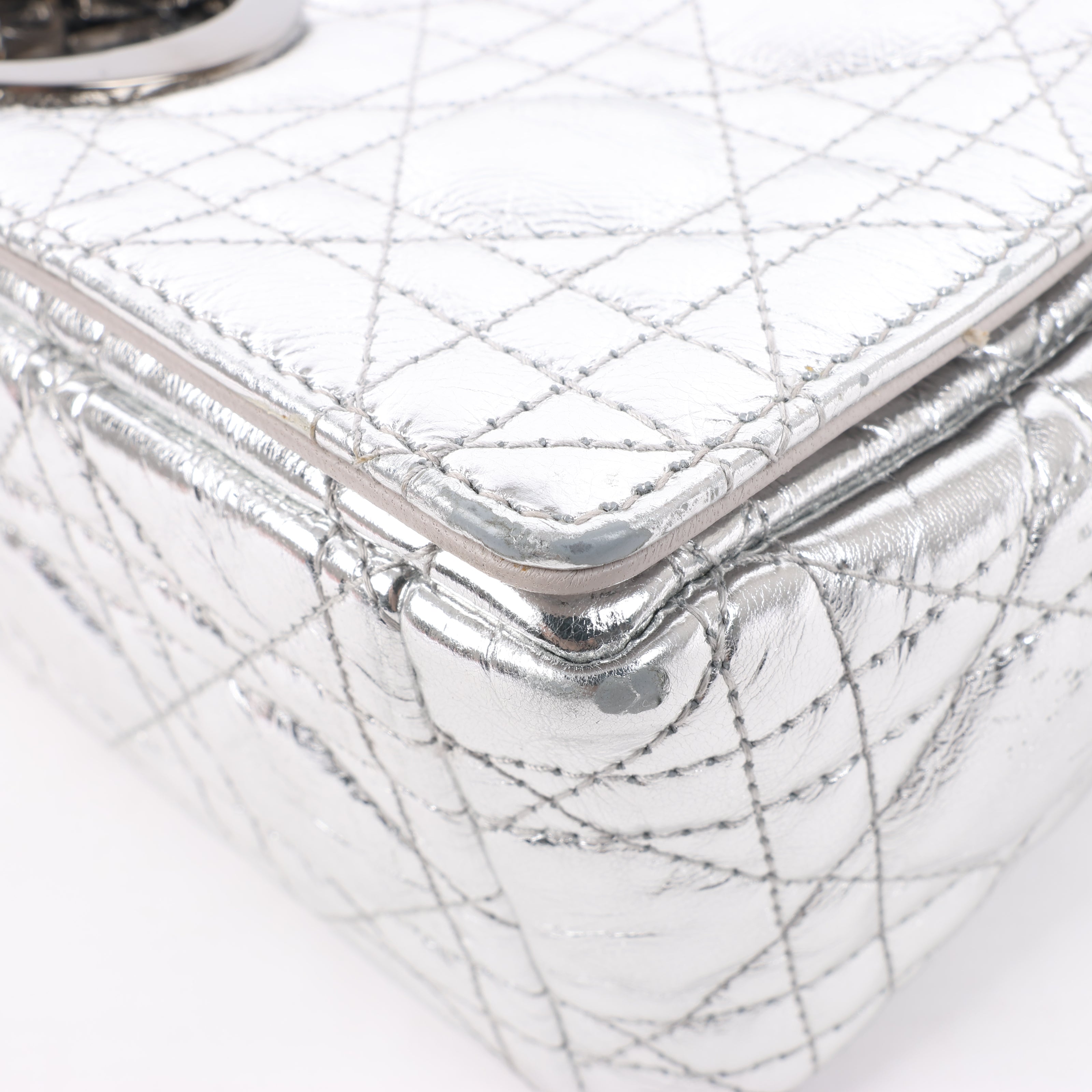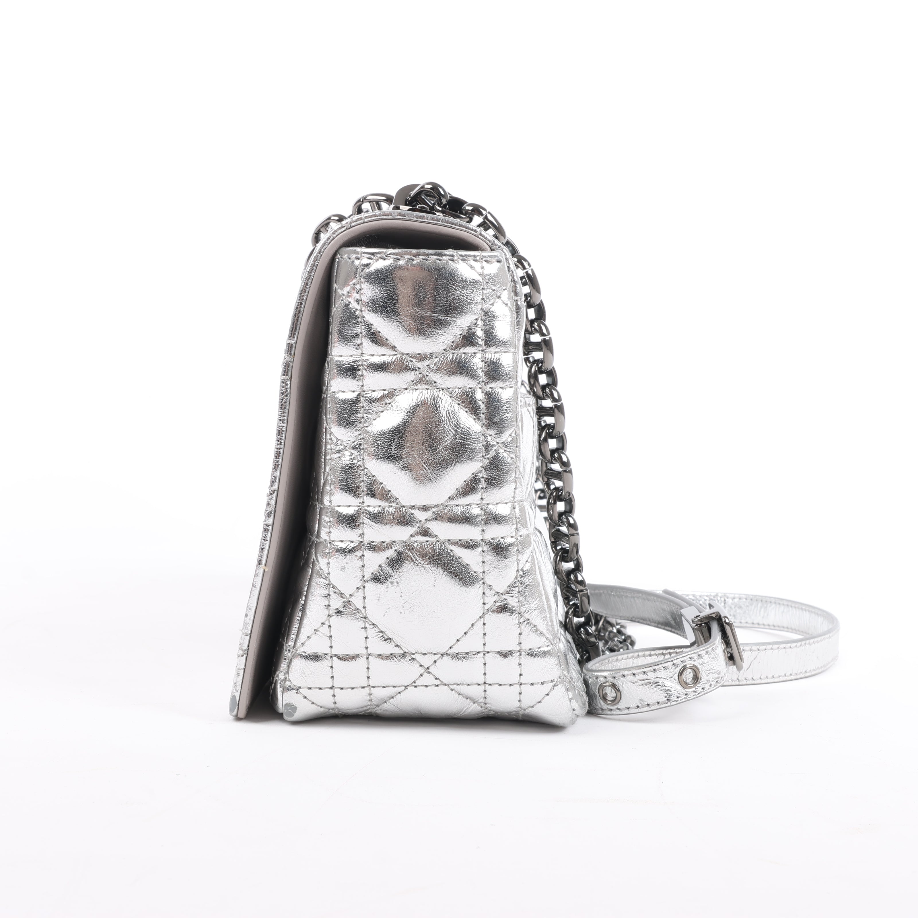 Dior Caro Leather Chain Shoulder Bag in Metallic Silver Secondhand