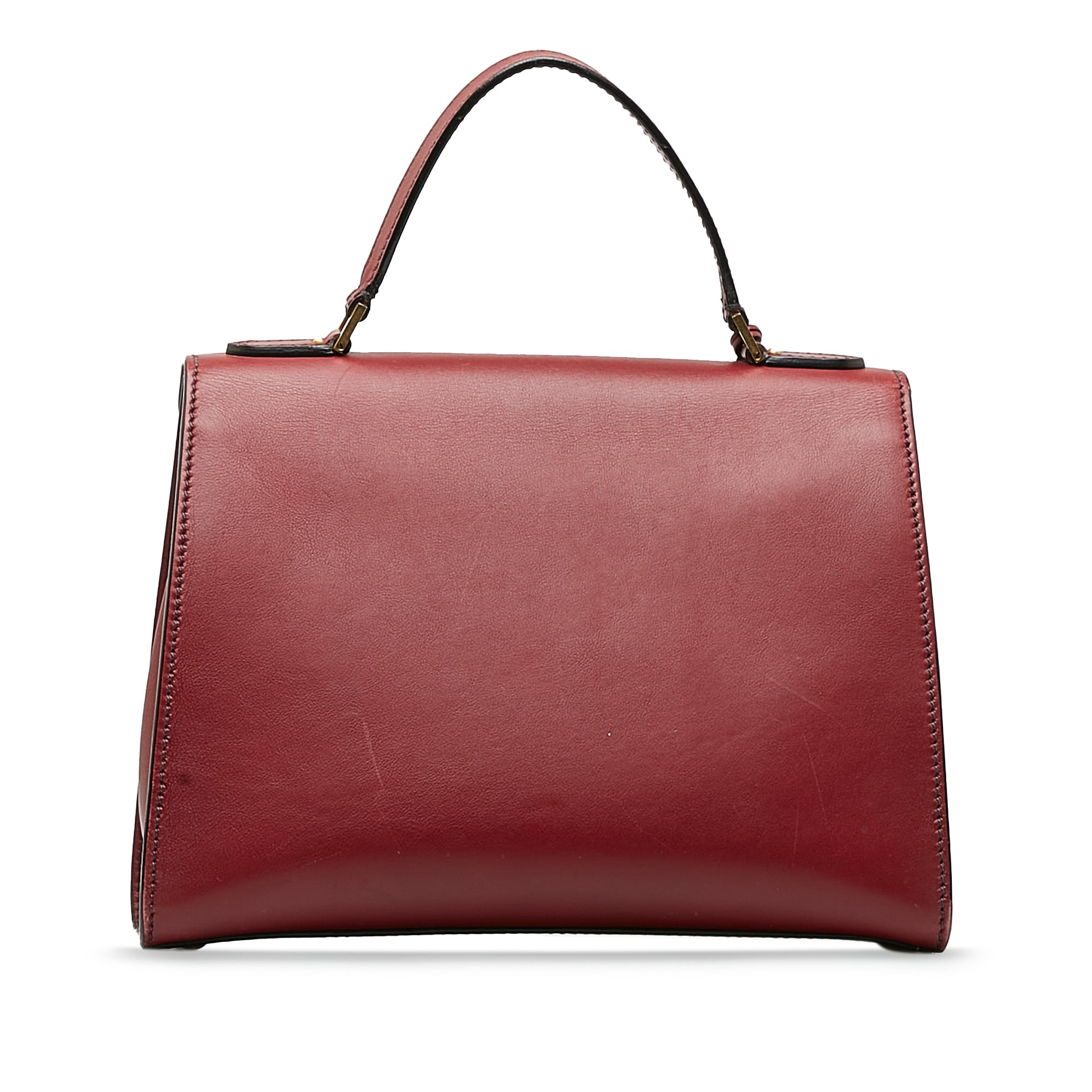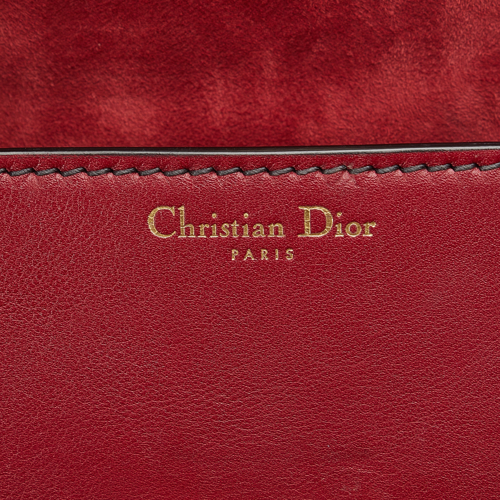 The DiorAddict Top Handle bag features a leather body, a flat leather top handle, a detachable flat leather shoulder strap, a flap with a push-lock closure, and interior zip and slip pockets. Retail Price: 4500.00