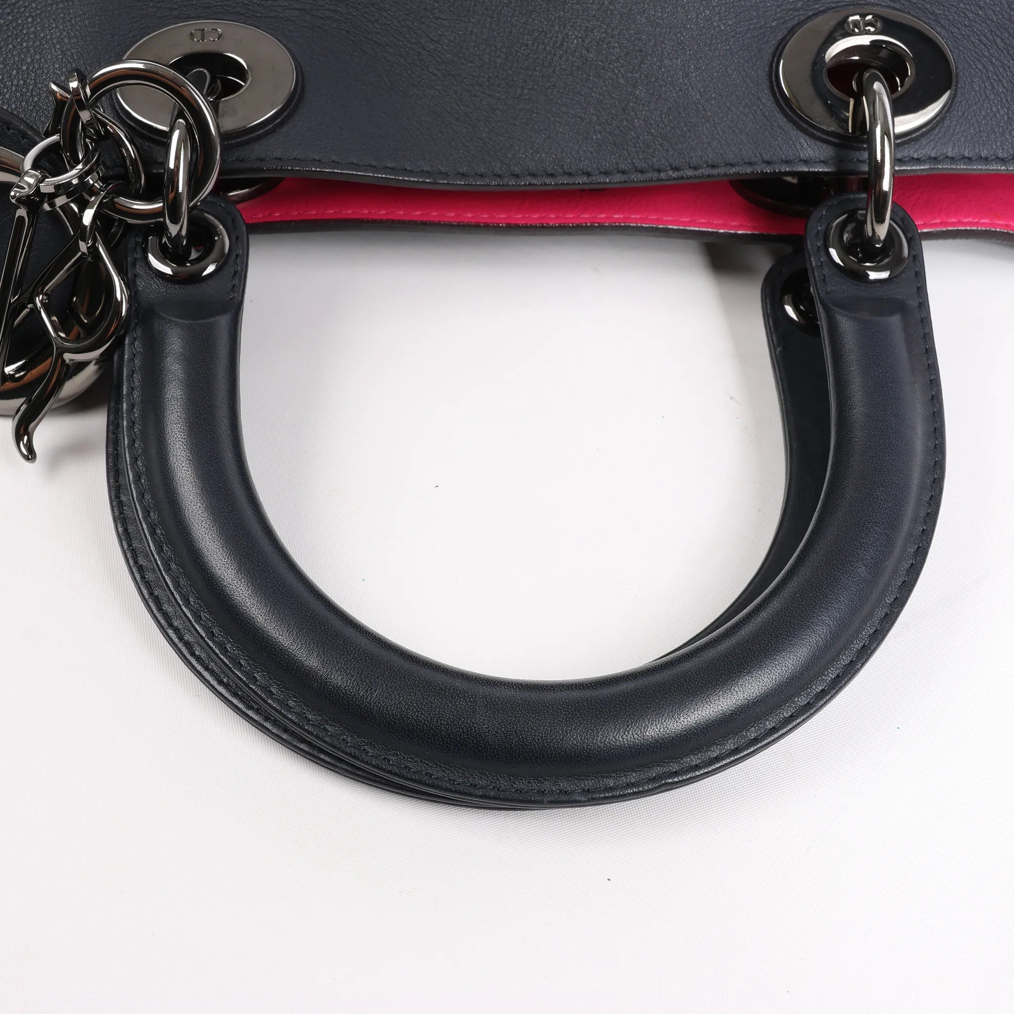 Dior Diorissimo Smooth Leather Large 2Way Handbag in Black x Rose Indien
