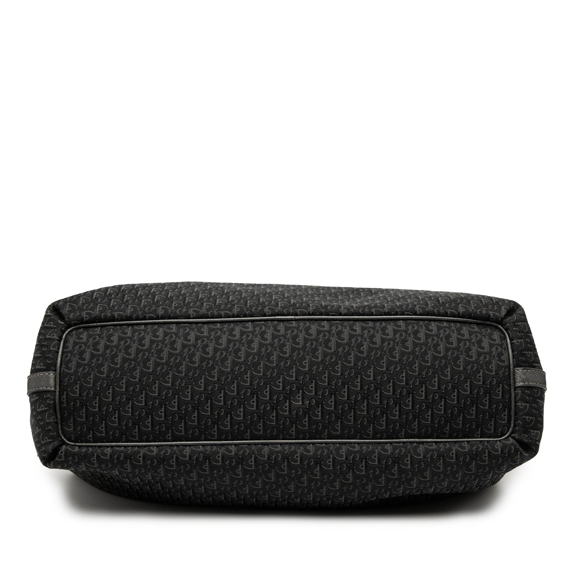 This tote bag features a canvas body with leather trim, rolled leather handles, an open top with snap closure, and interior zip and slip pockets. Retail Price: 995.00
