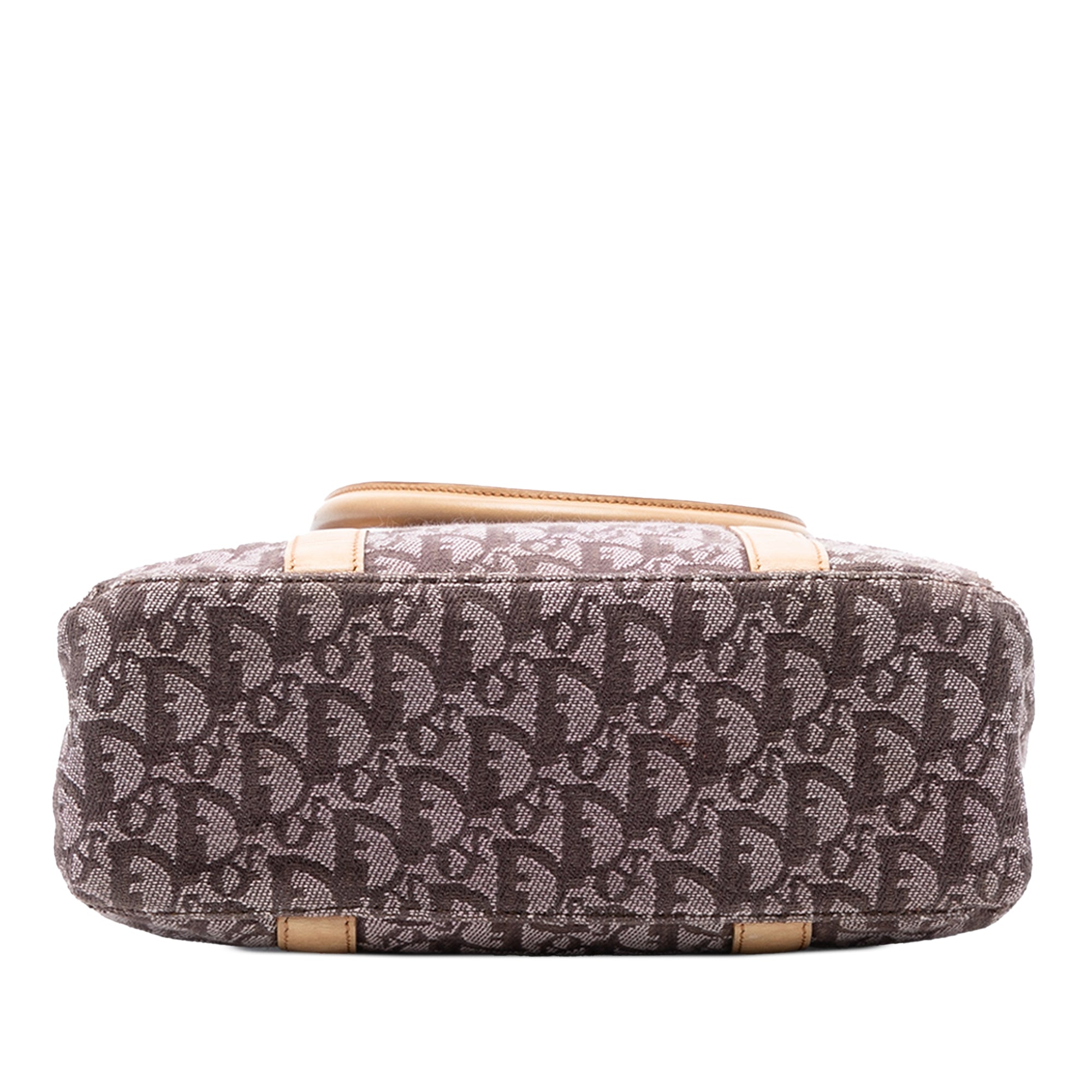 This tote bag features a canvas body with leather trim, rolled leather handles, an open top with magnetic snap closure, and interior zip and slip pockets. Retail Price: 1150.00