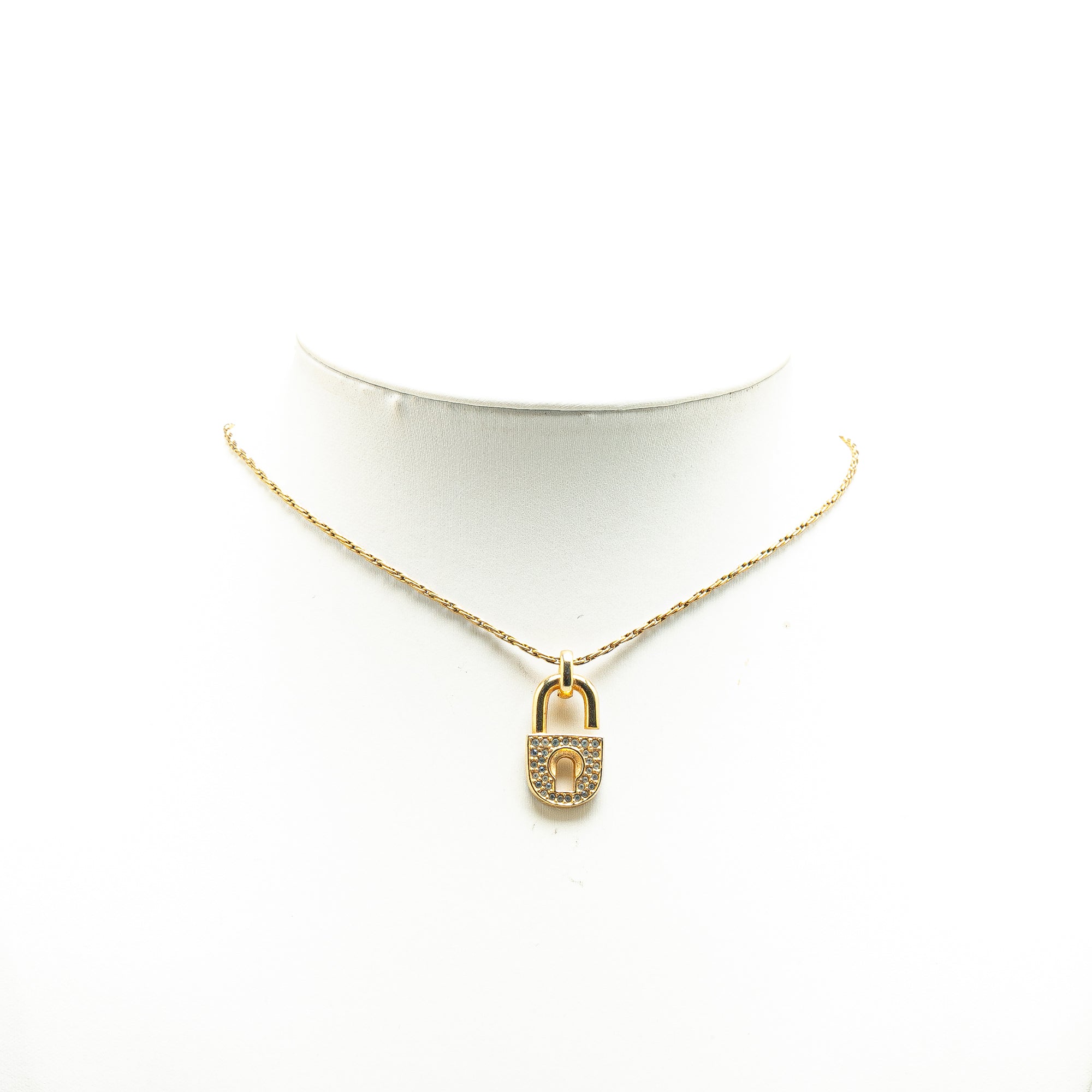 Dior Gold Plated Rhinestones Padlock Pendant Necklace