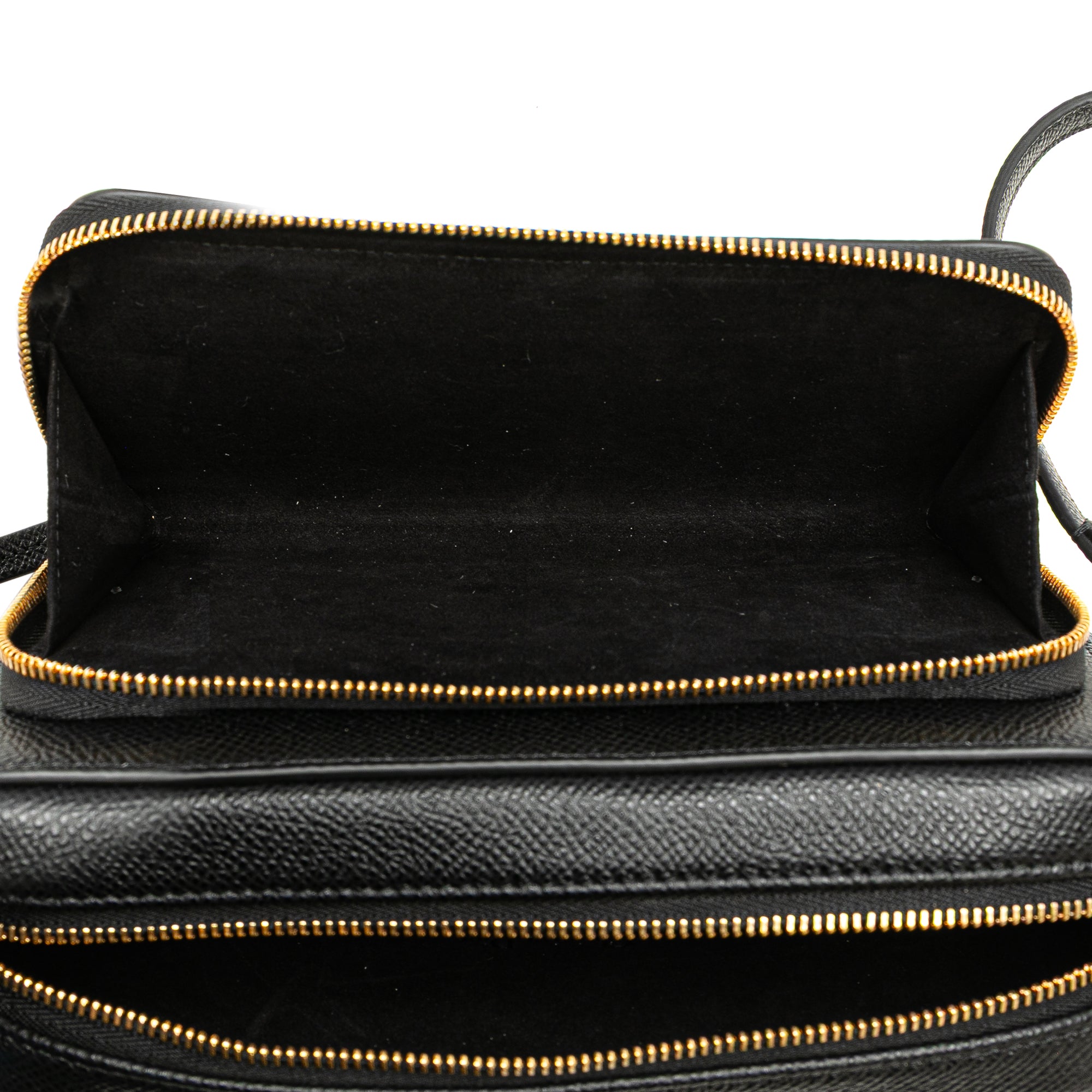 The Caro Double Pouch features a leather body, an adjustable and detachable flat leather shoulder strap, a top zip closure, and an exterior zip pocket. Inclusion: Dust bag. Retail Price: 4050.00