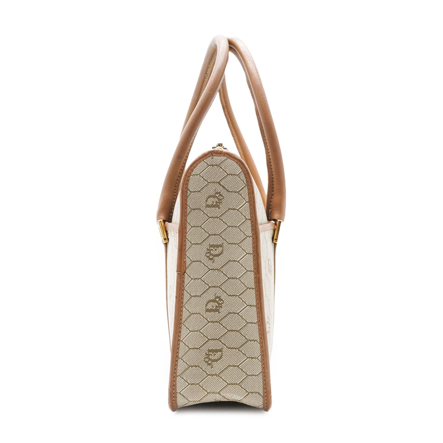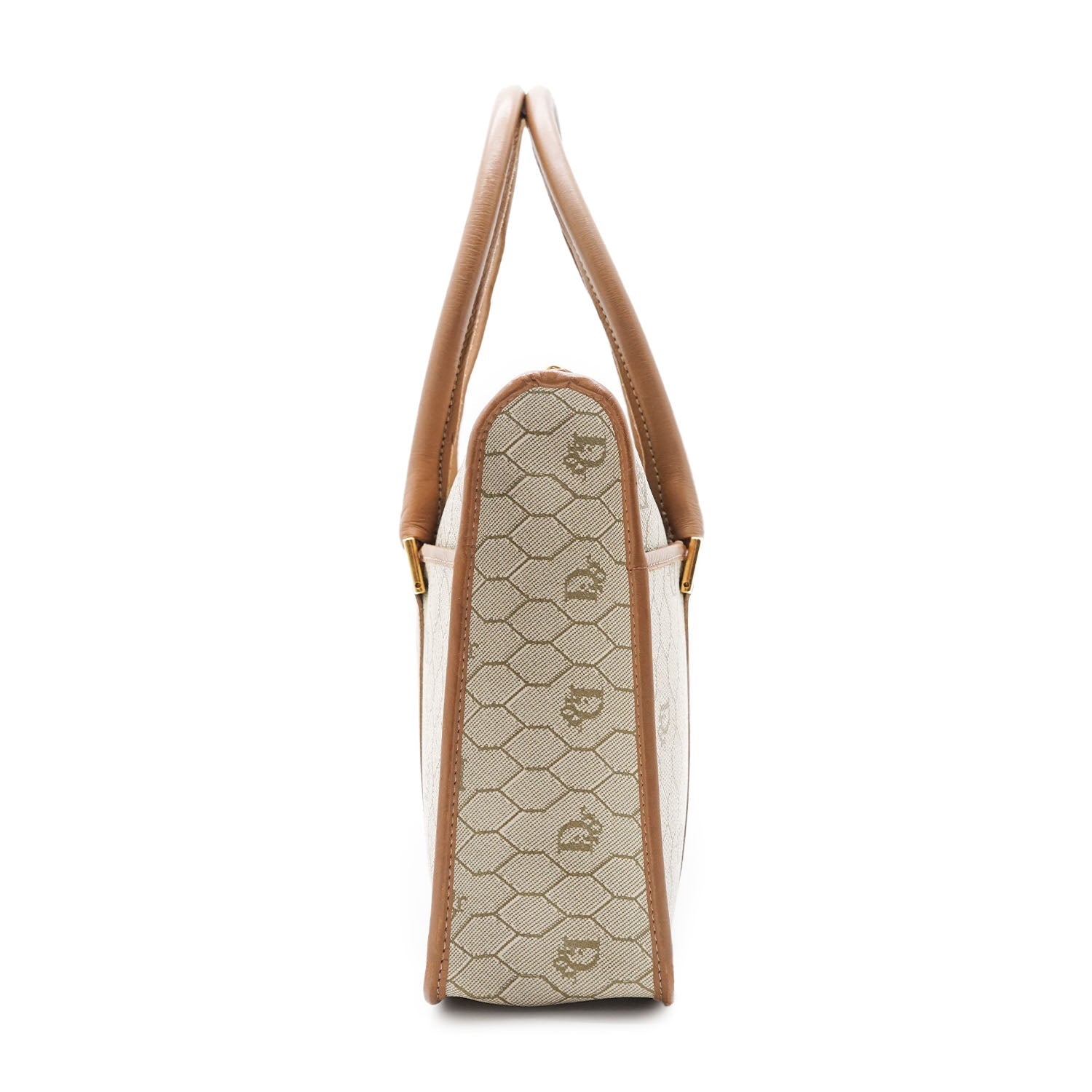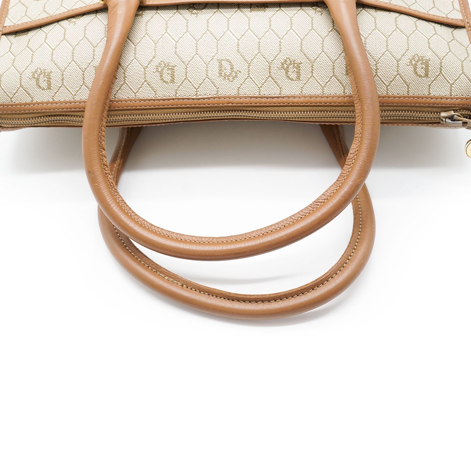 Honeycomb Top Handle Bag Brown Canvas, LeatherDepth: 6cmHeight: 21cmWidth: 32cmHand Drop: 10cmOutside Rank: BInside Rank: ABStain: Faint black marks on the top handlesDiscoloration: Slight hardware tarnishScratch: Minor corner rub/some rubbing along the leather piping, slight scratches on the leather parts (top handles)