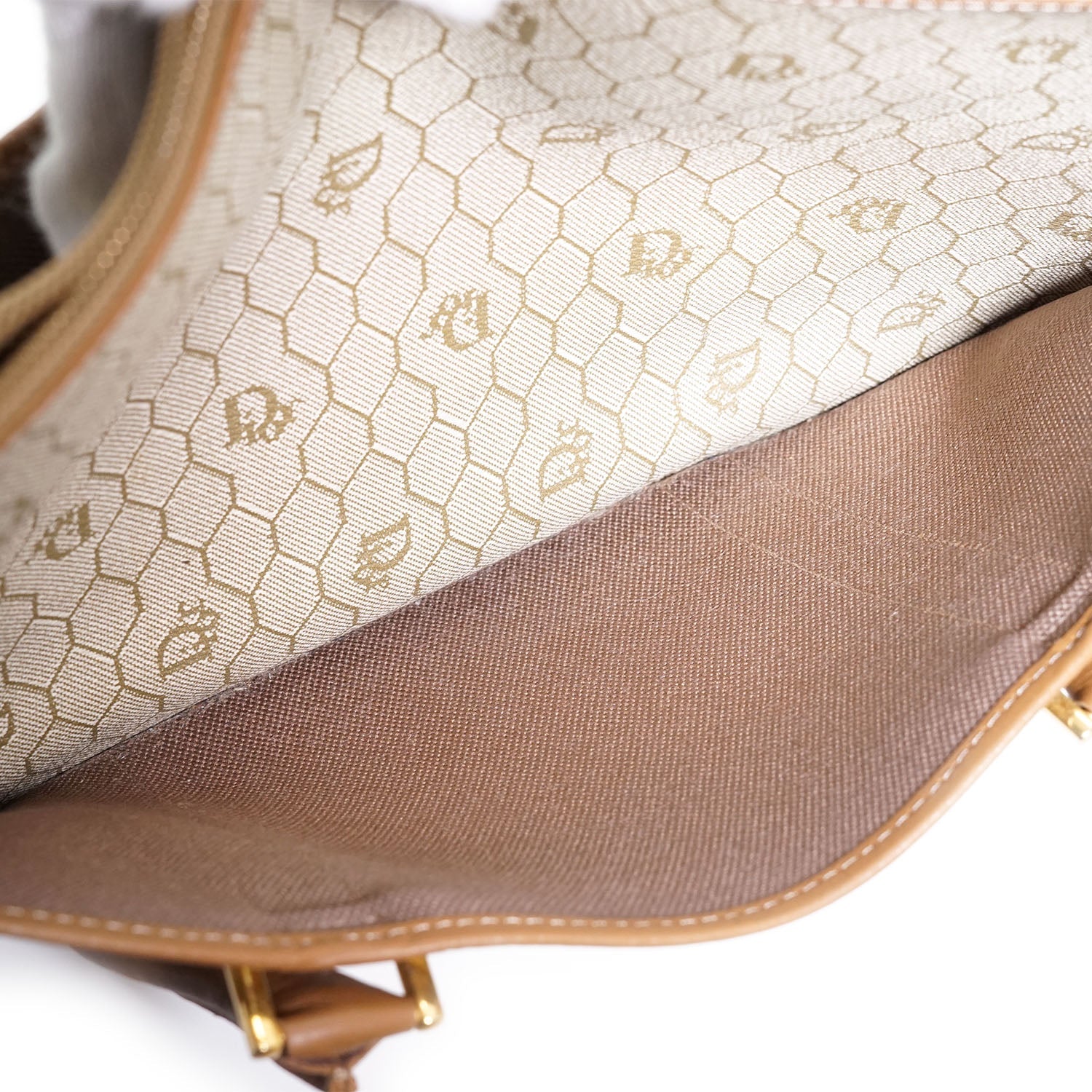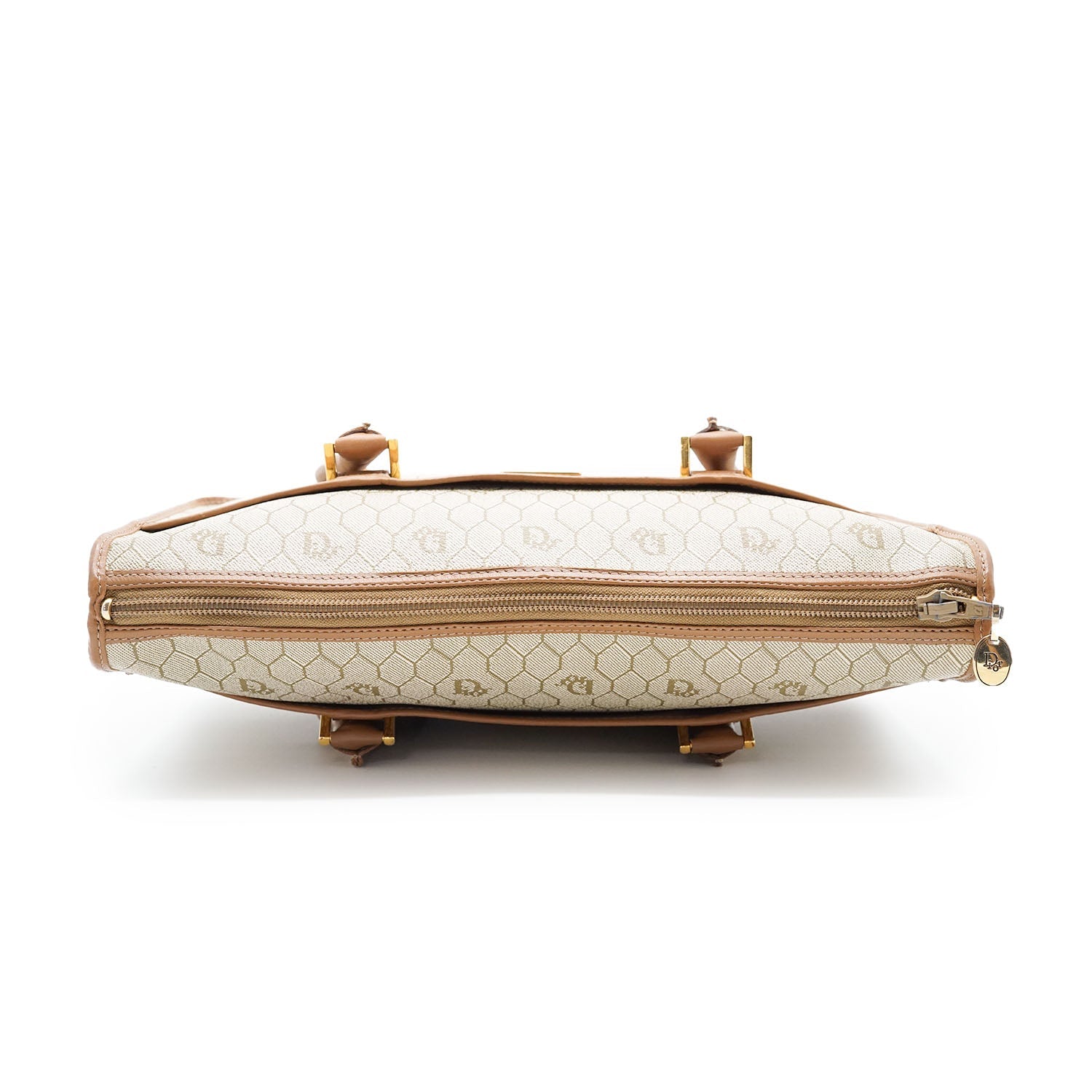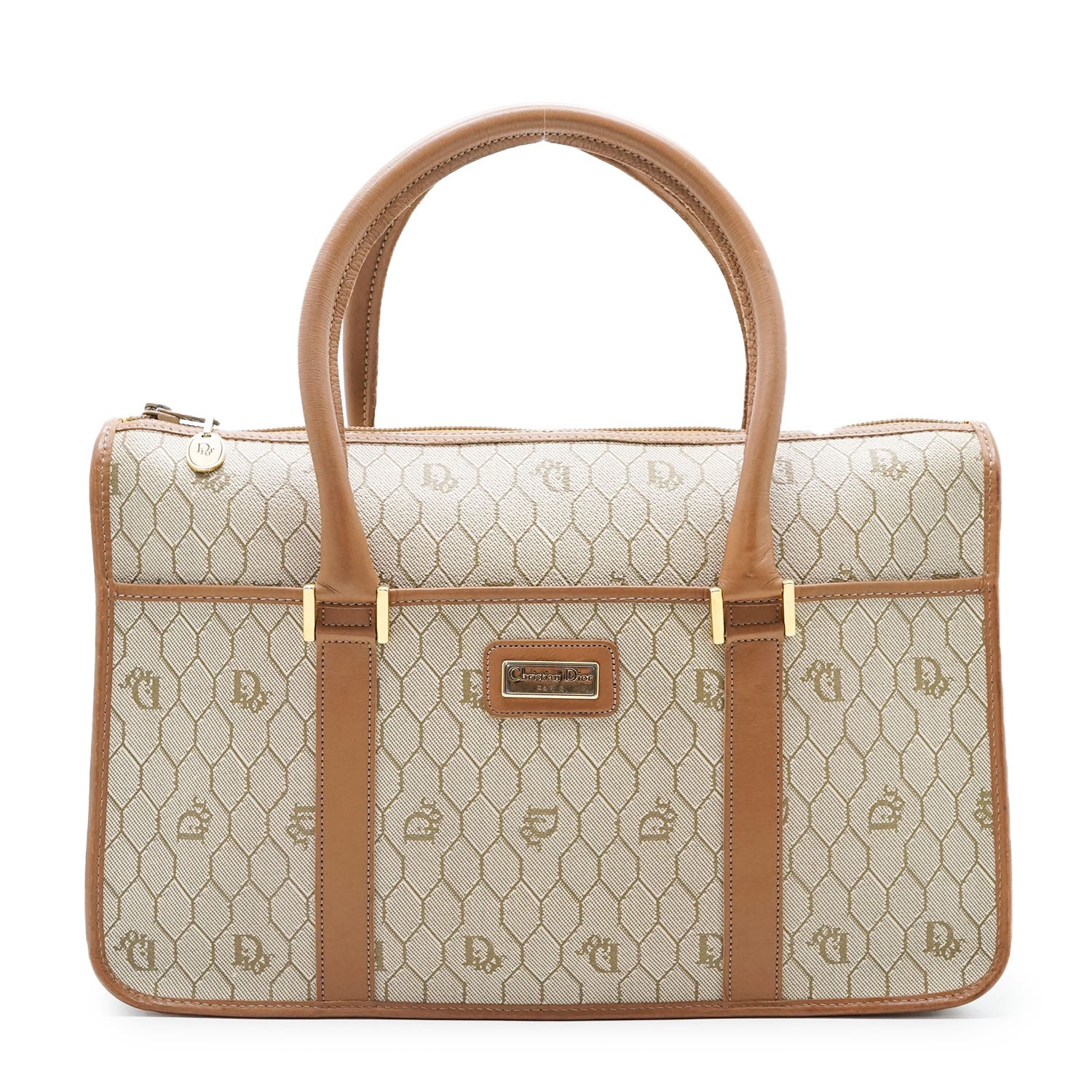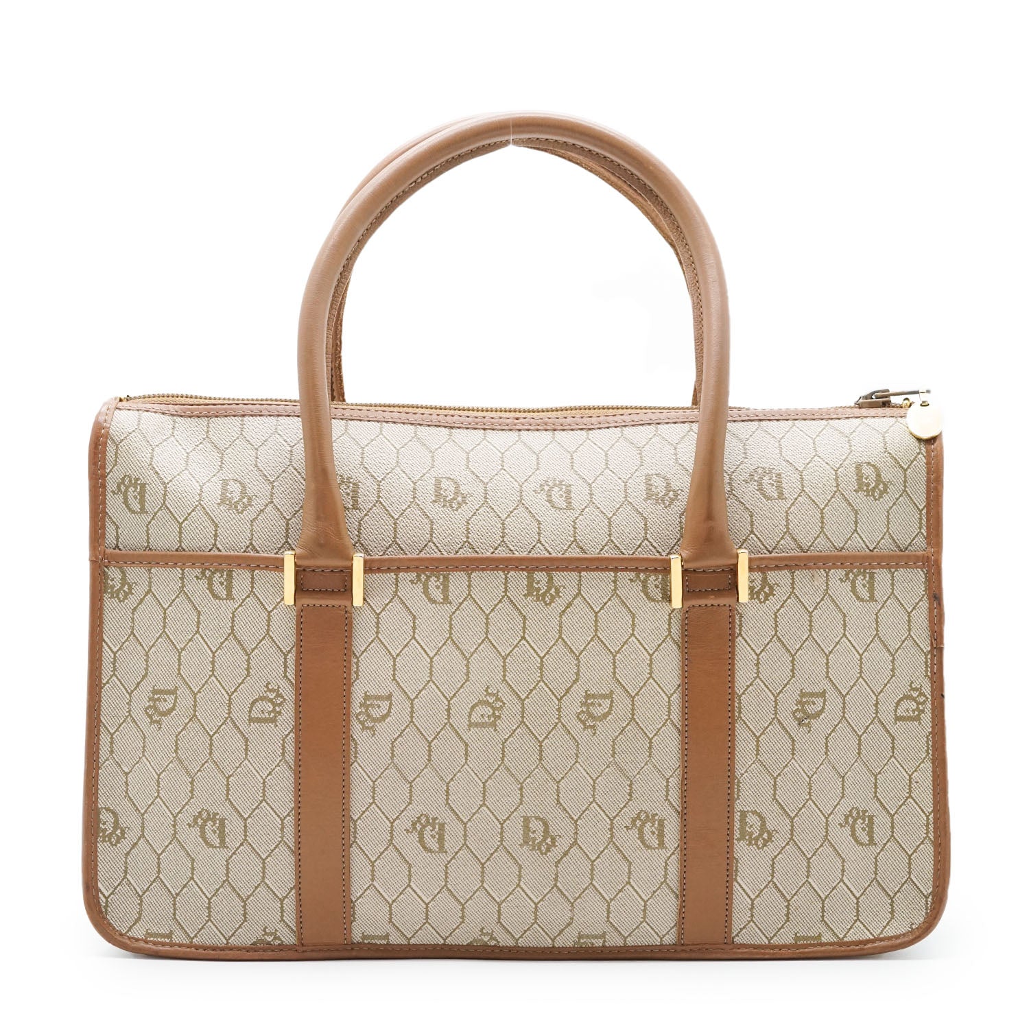 Honeycomb Top Handle Bag Brown Canvas, LeatherDepth: 6cmHeight: 21cmWidth: 32cmHand Drop: 10cmOutside Rank: BInside Rank: ABStain: Faint black marks on the top handlesDiscoloration: Slight hardware tarnishScratch: Minor corner rub/some rubbing along the leather piping, slight scratches on the leather parts (top handles)