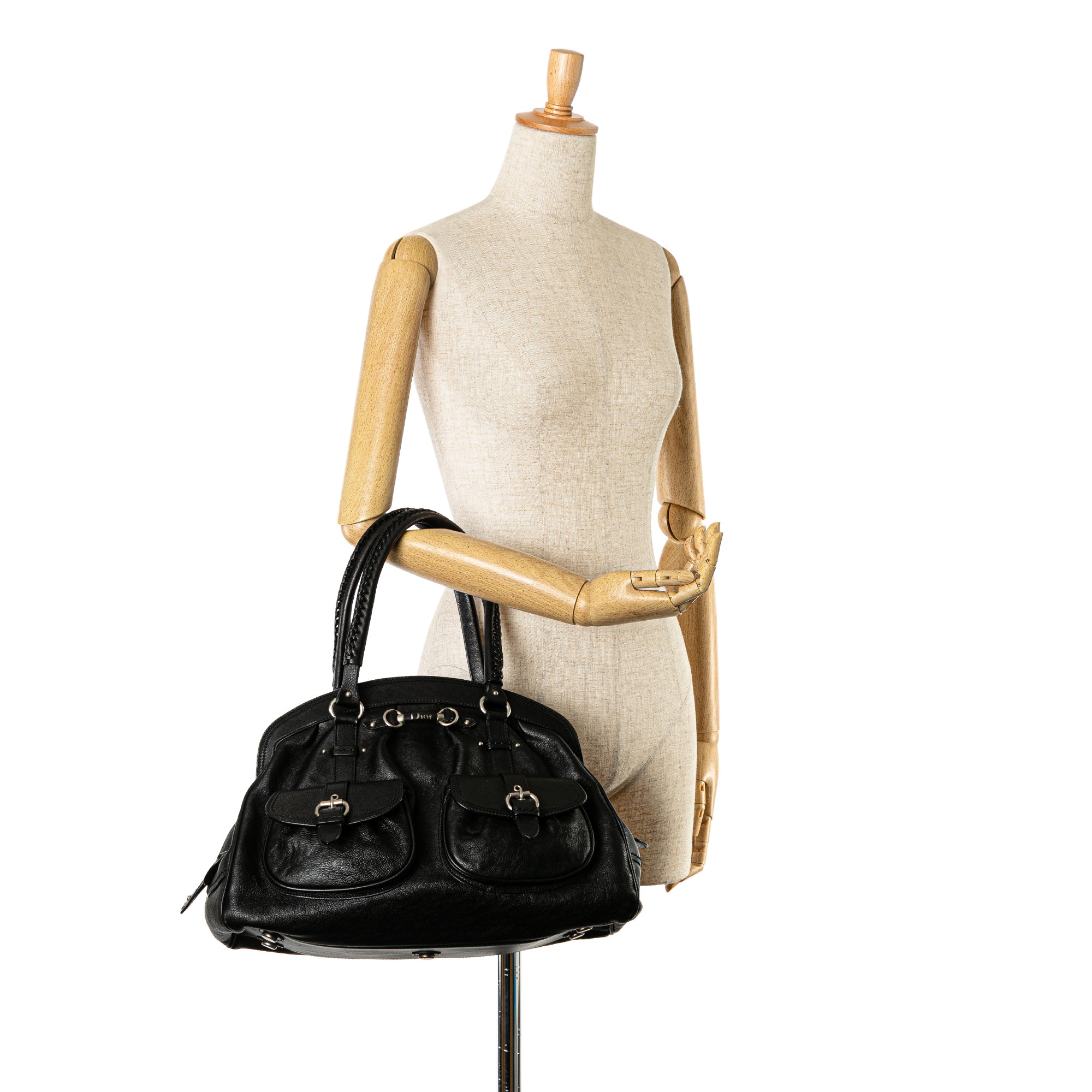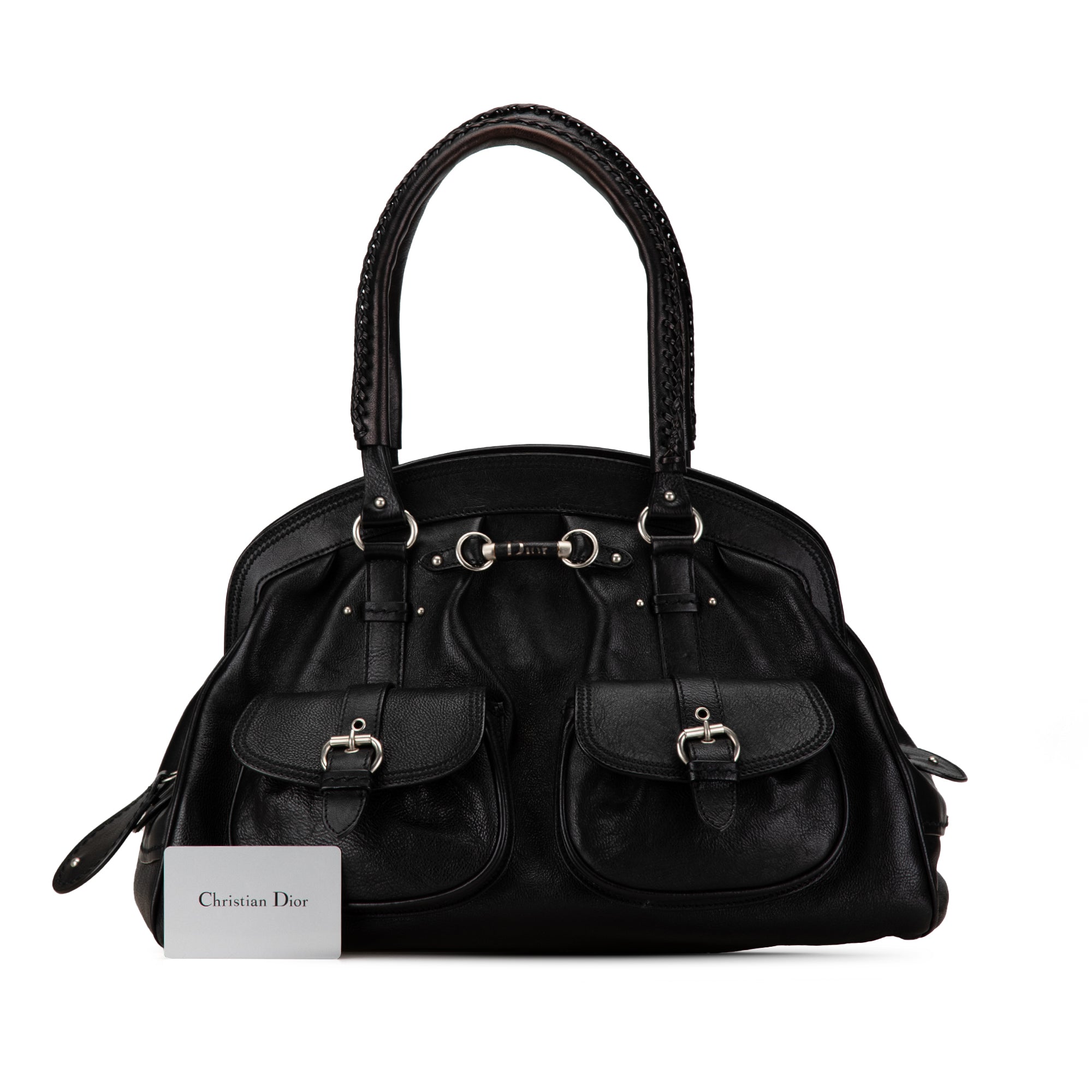 The My Dior features a leather body, rolled leather handles, a top zip closure, exterior front flap pockets, and interior zip and slip pockets. Inclusion: authenticity card. Retail Price: 1100.00