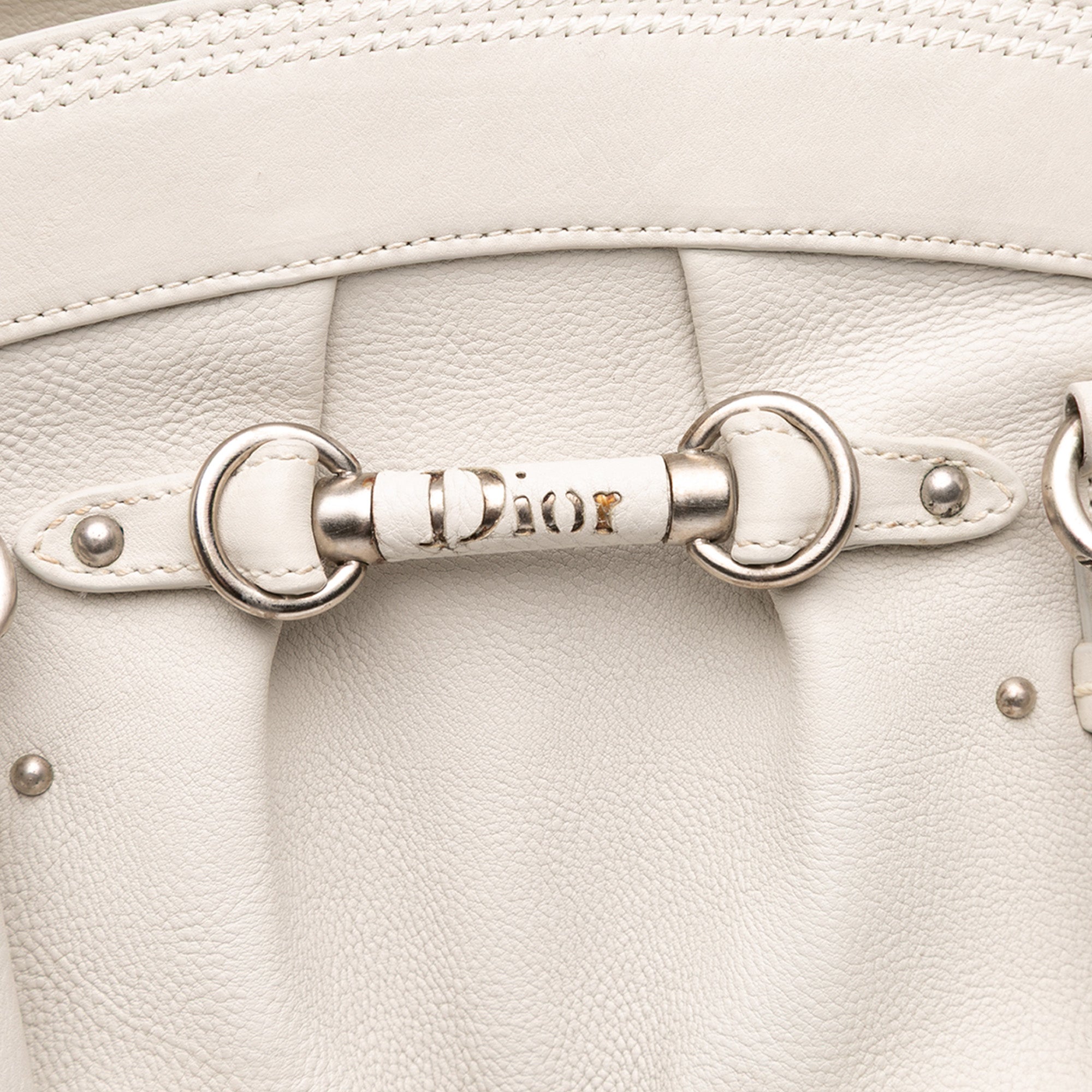 The My Dior features a leather body, rolled leather handles, a top zip closure, exterior front flap pockets, and interior zip and slip pockets. Inclusion: authenticity card. Retail Price: 1100.00