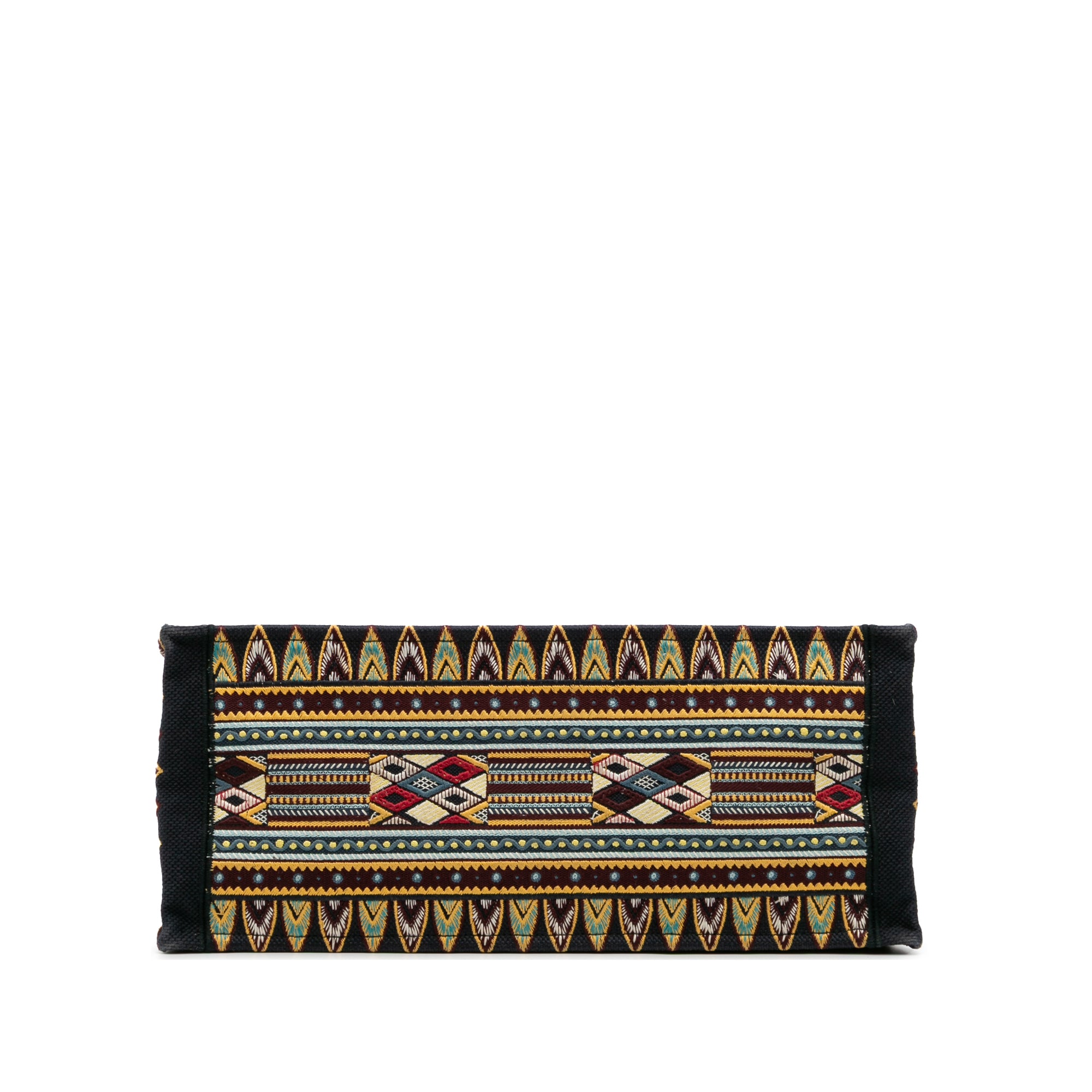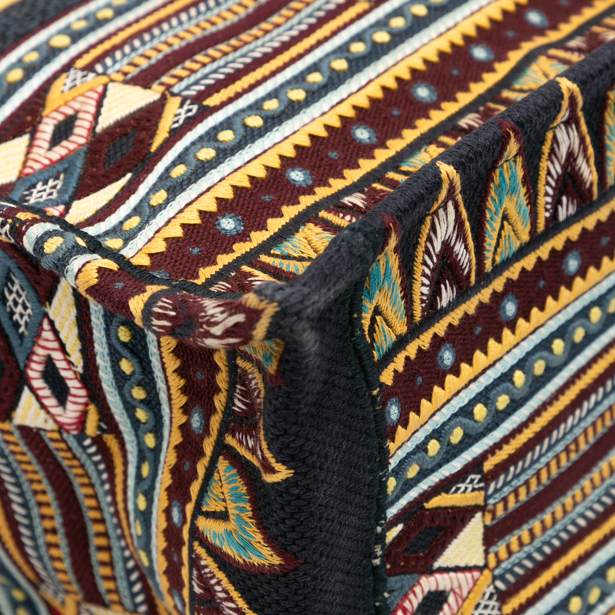 The Book Tote features an embroidered canvas body, rolled top handles, and an open top. Retail Price: 4500.00