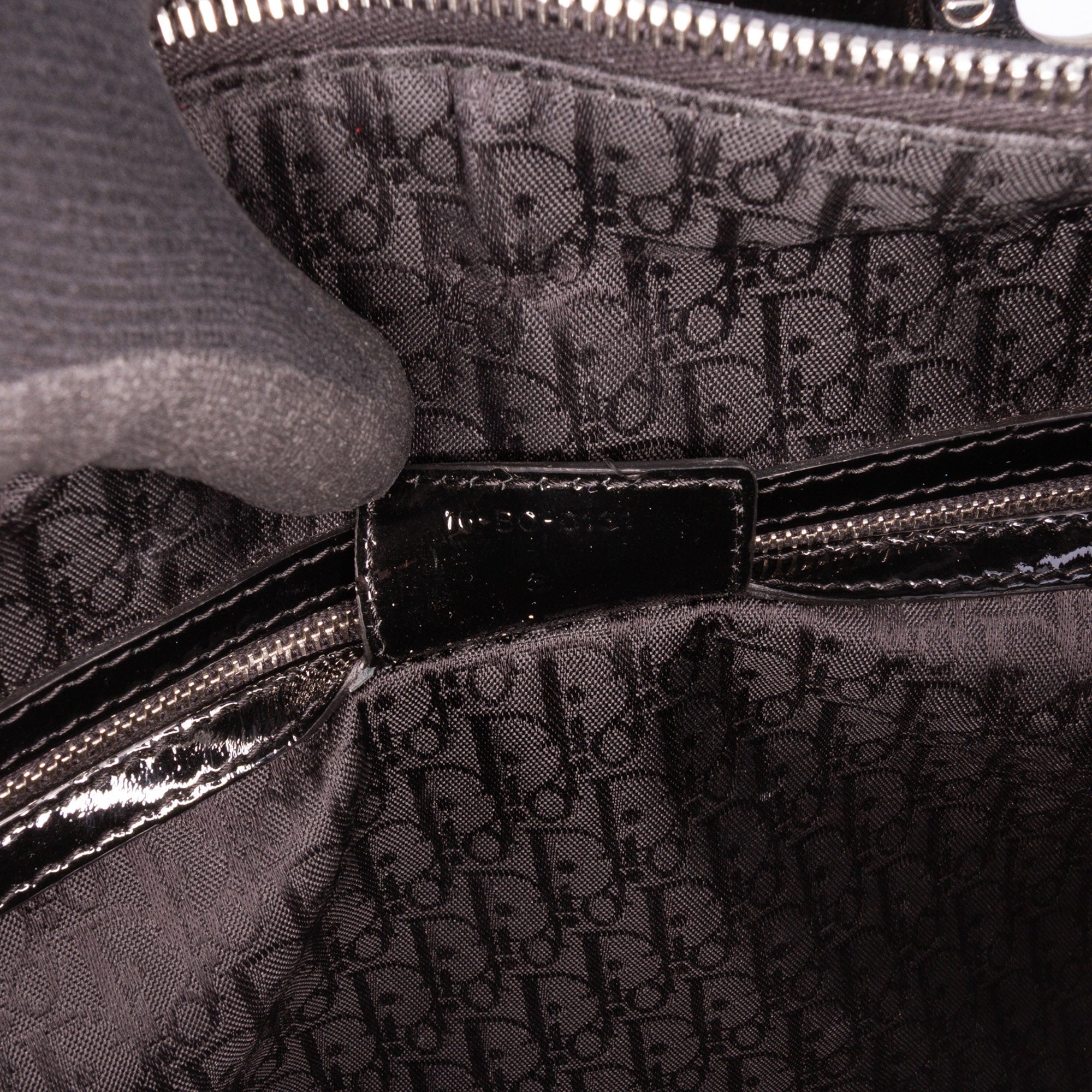 The Lady Dior features a quilted patent leather body, flat leather top handles, a detachable flat strap, a top zip closure, and an interior zip pocket. Retail Price: 6500.00