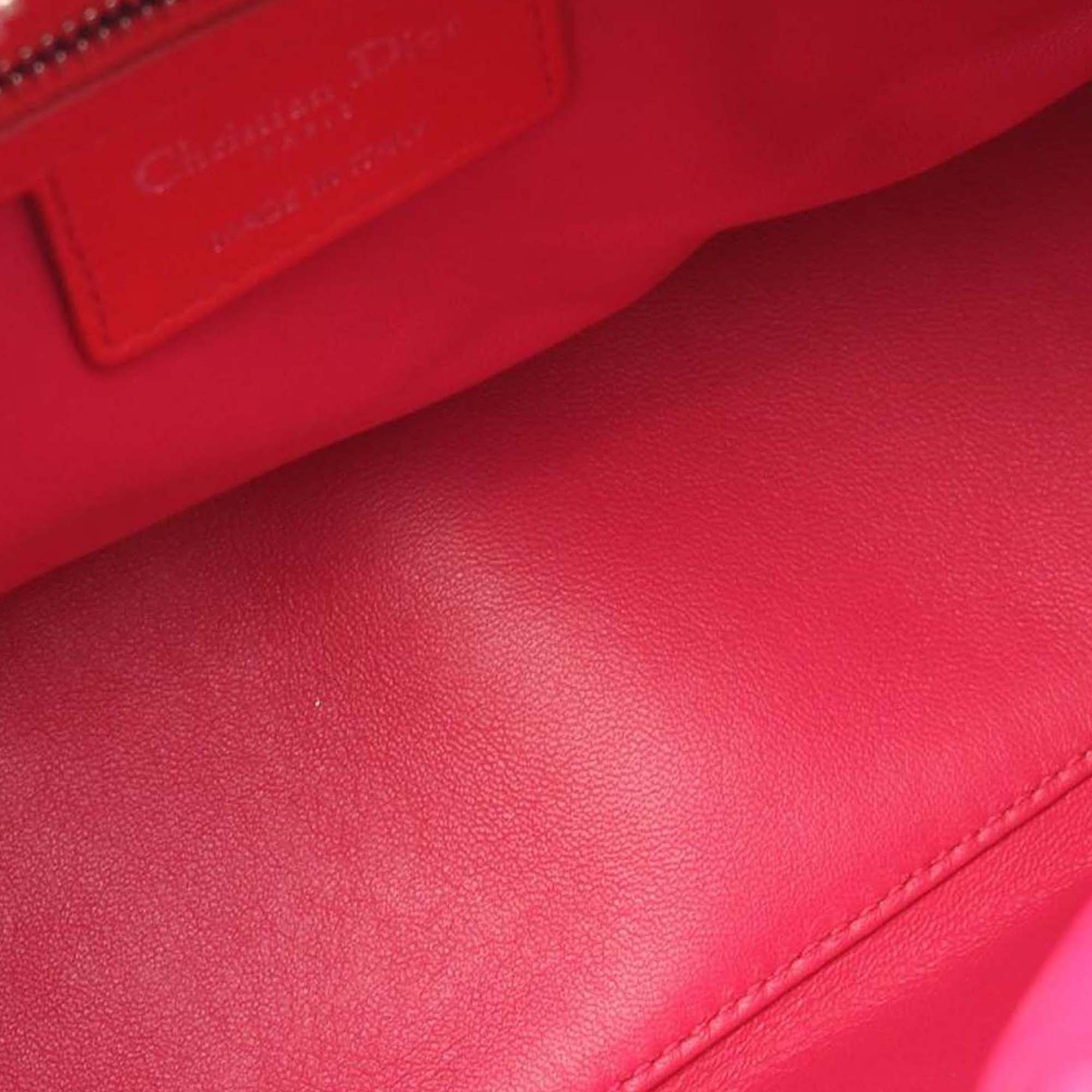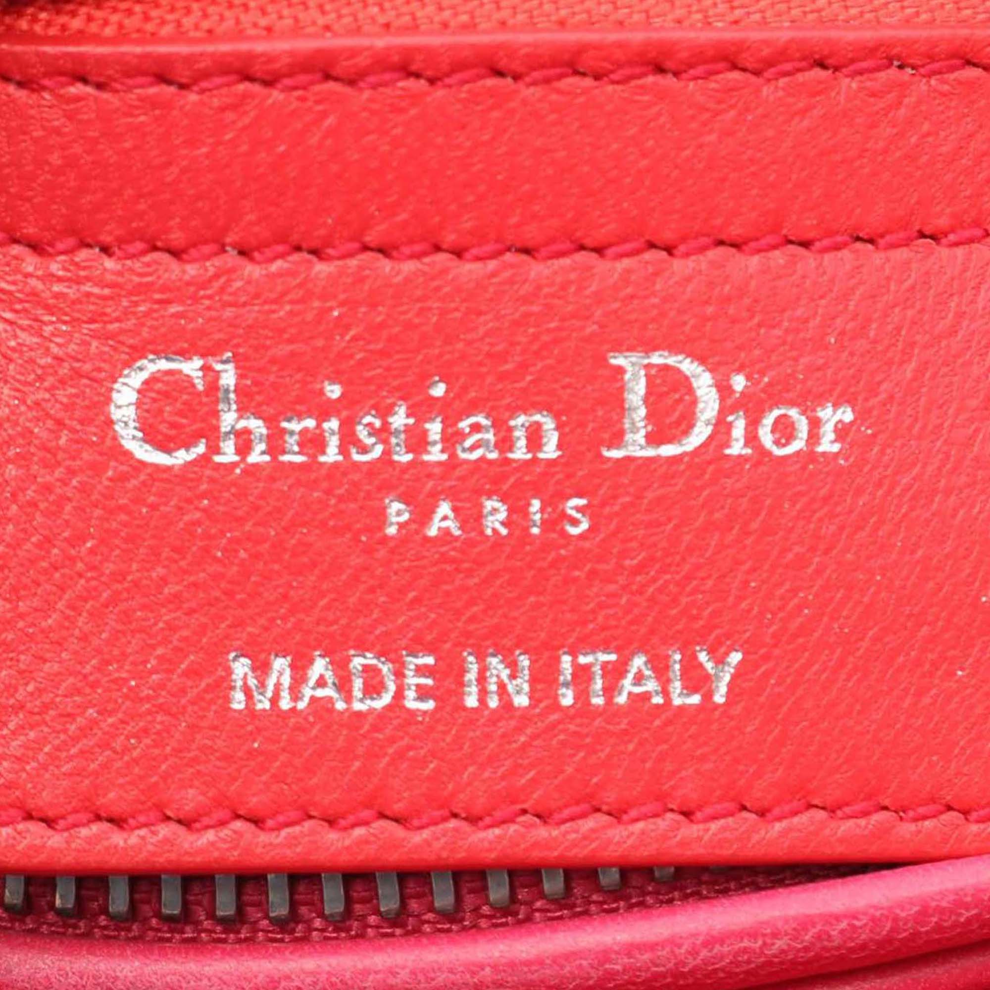 The Lady Dior features a quilted bicolor lambskin leather body, flat leather top handles, a detachable flat leather shoulder strap, a top zip closure, and an interior zip pocket. Retail Price: 6500.00