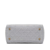 The Lady D-Lite features a canvas body, flat handles, a detachable strap, a top flap, and interior zip and slip pockets. Retail Price: 3600.00