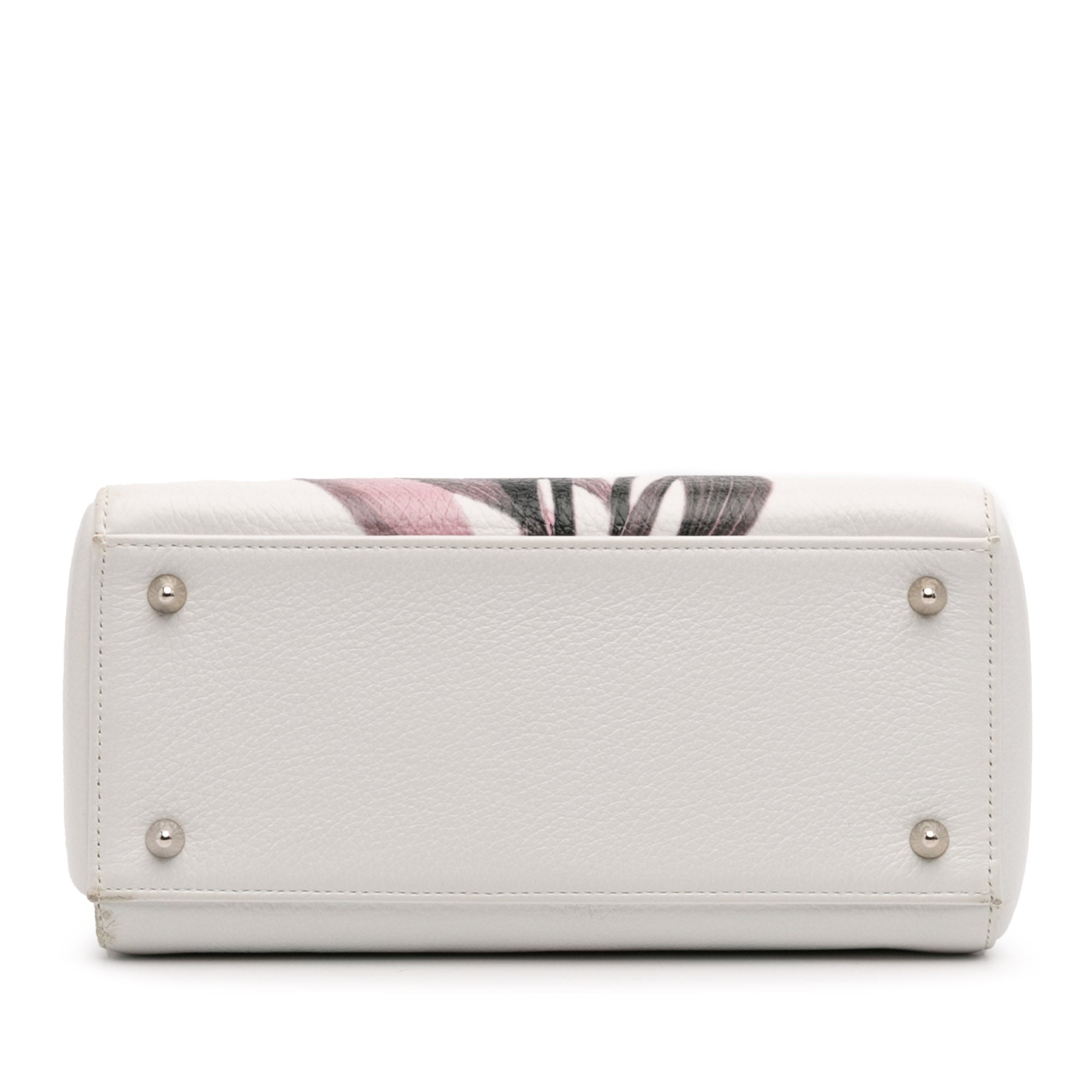 The Lady Dior features a printed deerskin leather body, silver-tone hardware, flat leather handles, a detachable flat leather strap, a top zip closure, and an interior zip pocket. Retail Price: 2900.00