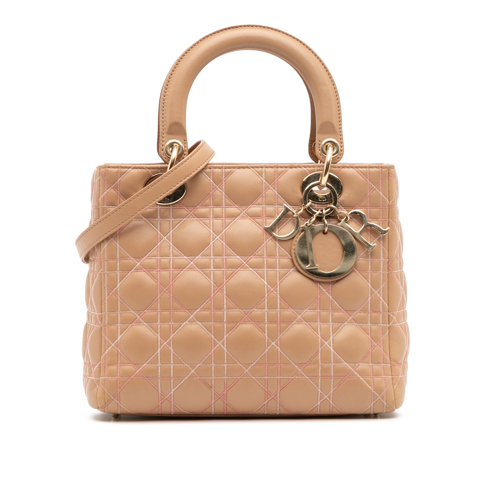 Dior Medium Lambskin Cannage Contrast Stitch Lady Dior
