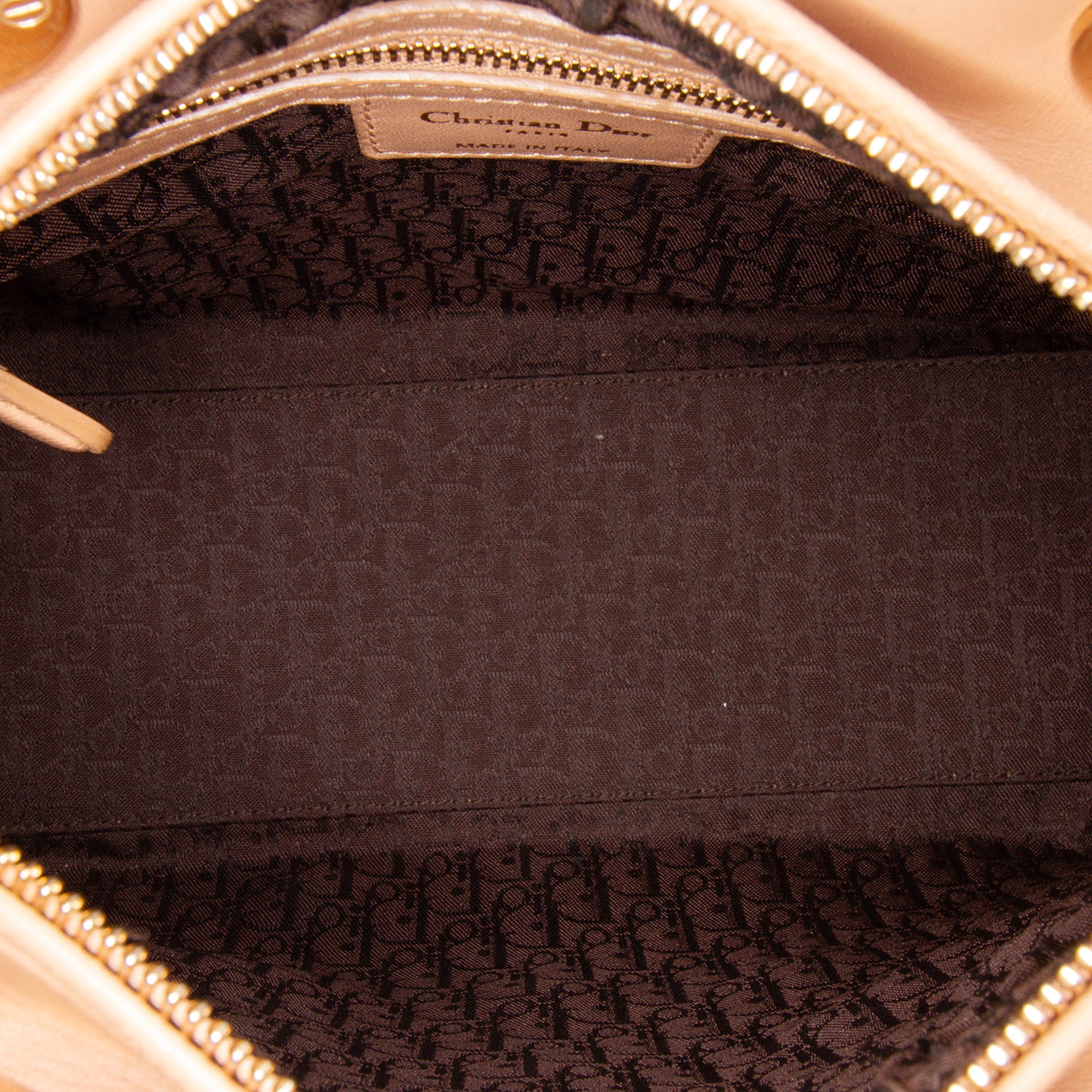The Lady Dior features a stitched lambskin leather body, flat leather top handles, a detachable flat strap, a top zip closure, and an interior zip pocket. Retail Price: 6500.00