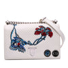 The Diorama features an embroidered lambskin leather body, a chain link shoulder strap with leather guard, a front flap with a push lock closure, and interior zip and slip pockets. Retail Price: 4100.00