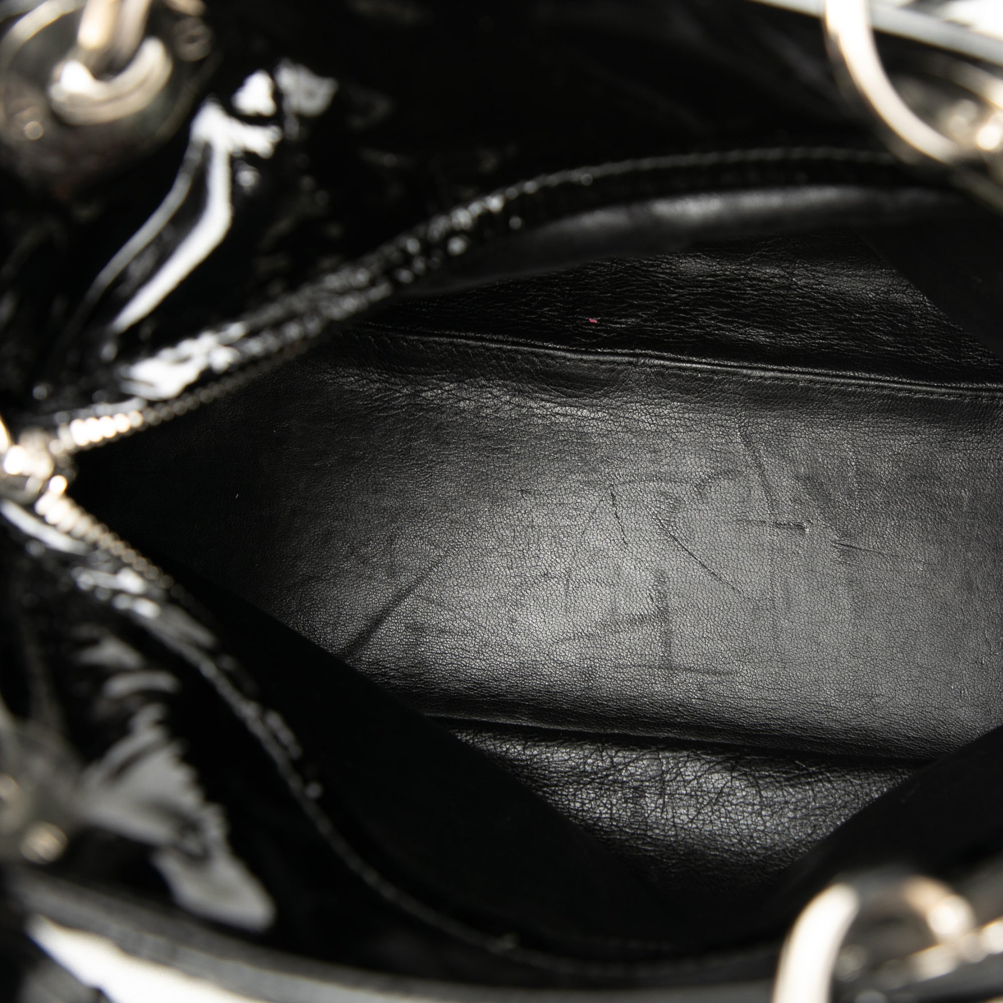 This satchel features a quilted patent leather body, rolled leather handles, a detachable flat leather strap, a top zip closure, and an interior zip pocket. Inclusion: Dust bag. Retail Price: 6700.00