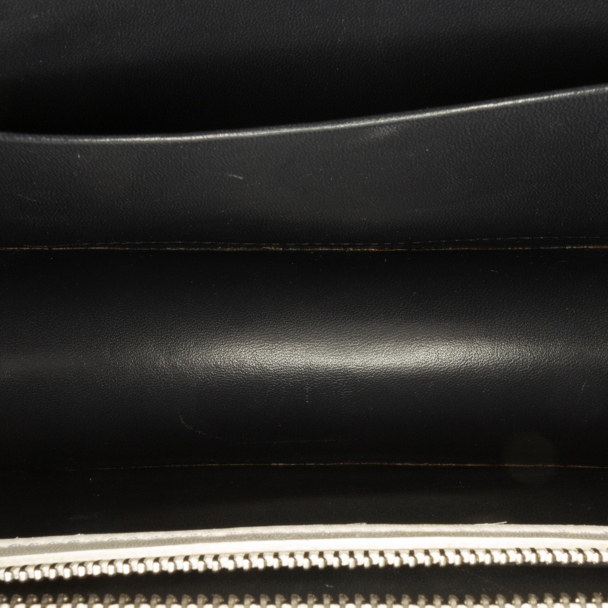 This wallet on chain features a patent leather body, a silver-tone chain shoulder strap with leather guard, a front flap with a push lock closure, and interior zip and slip pockets. Inclusion: Dust bag, authenticity card. Retail Price: 2835.00