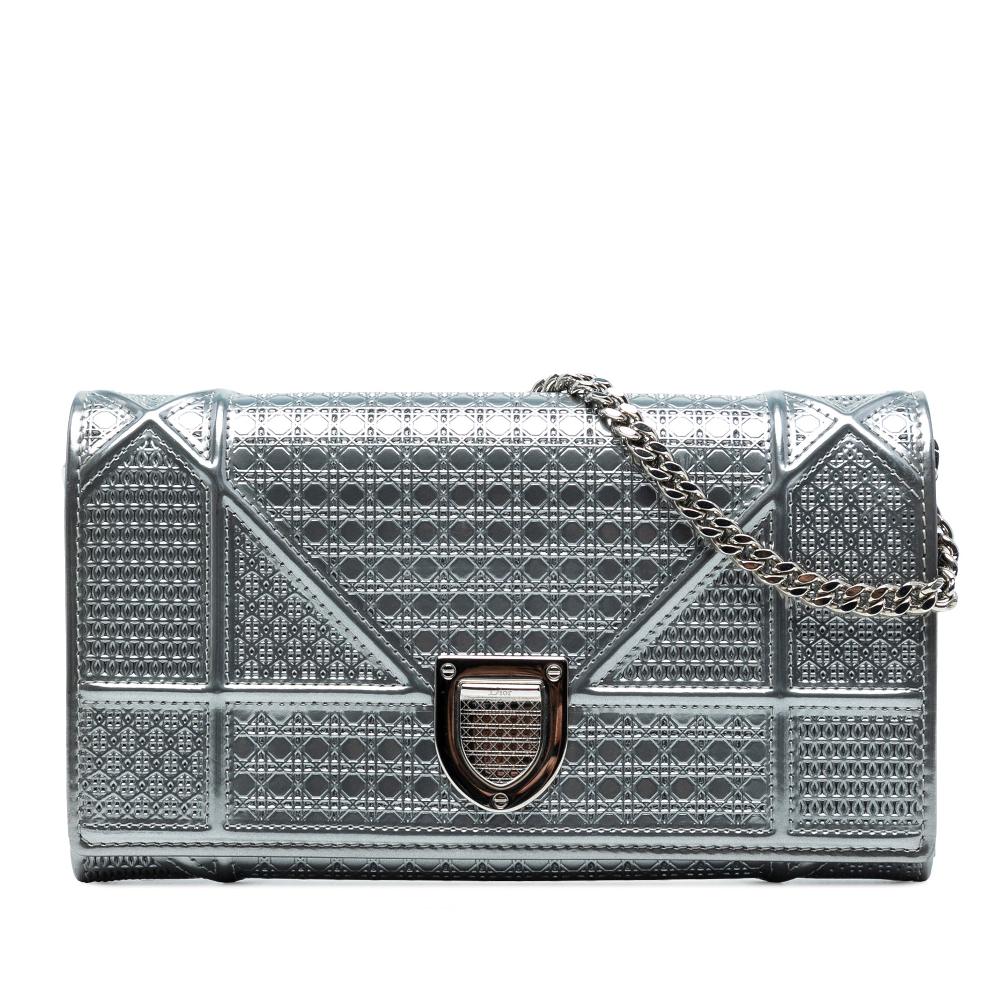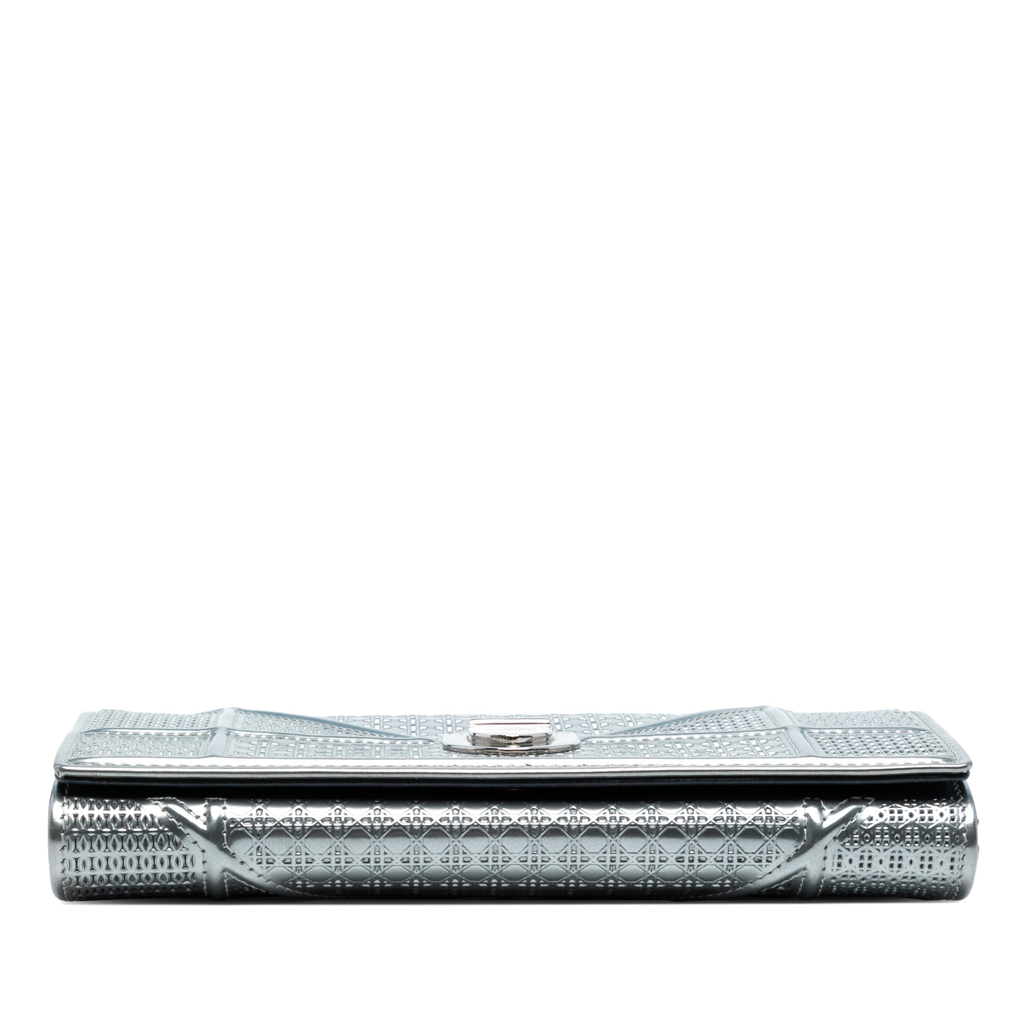 Dior Metallic Patent Microcannage Diorama Wallet on Chain