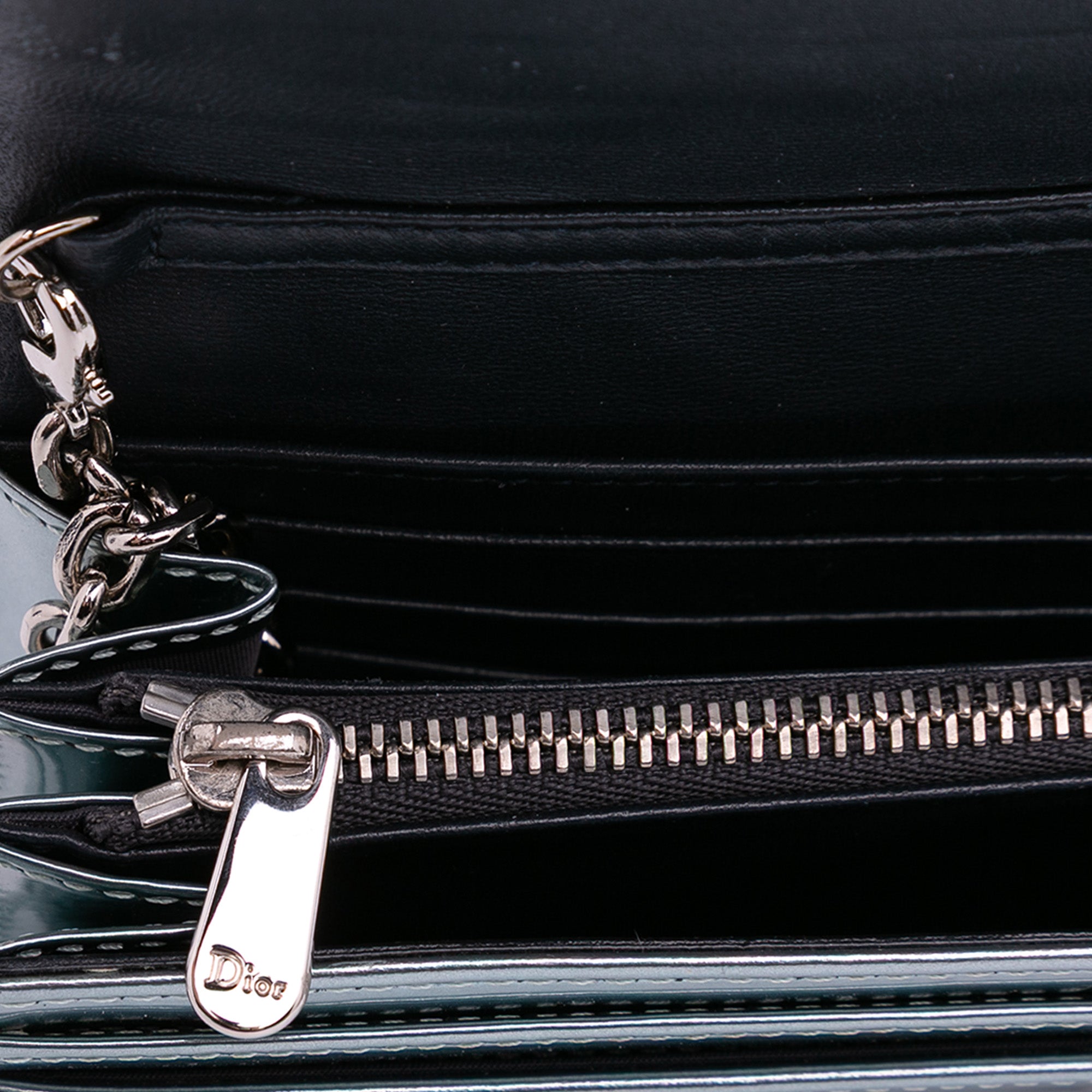 Dior Metallic Patent Microcannage Diorama Wallet on Chain