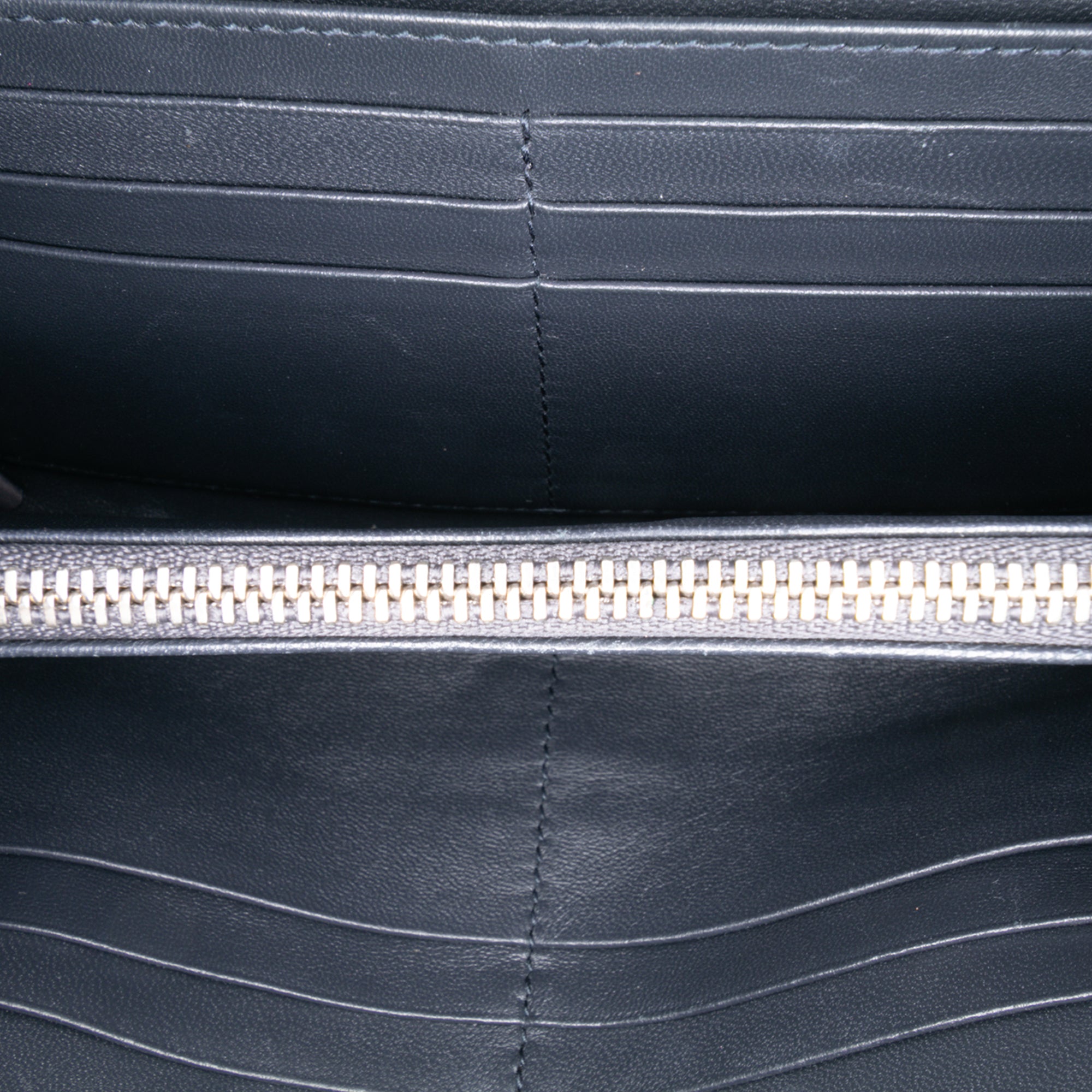 This wallet on chain features a patent leather body, a chain link shoulder strap, a front flap with a push lock closure, and interior zip and slip pockets. Inclusion: box. Retail Price: 3000.00