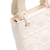 The Lady Dior features a quilted leather body, flat leather handles, a detachable strap, and a top flap closure. Retail Price: 4900.00