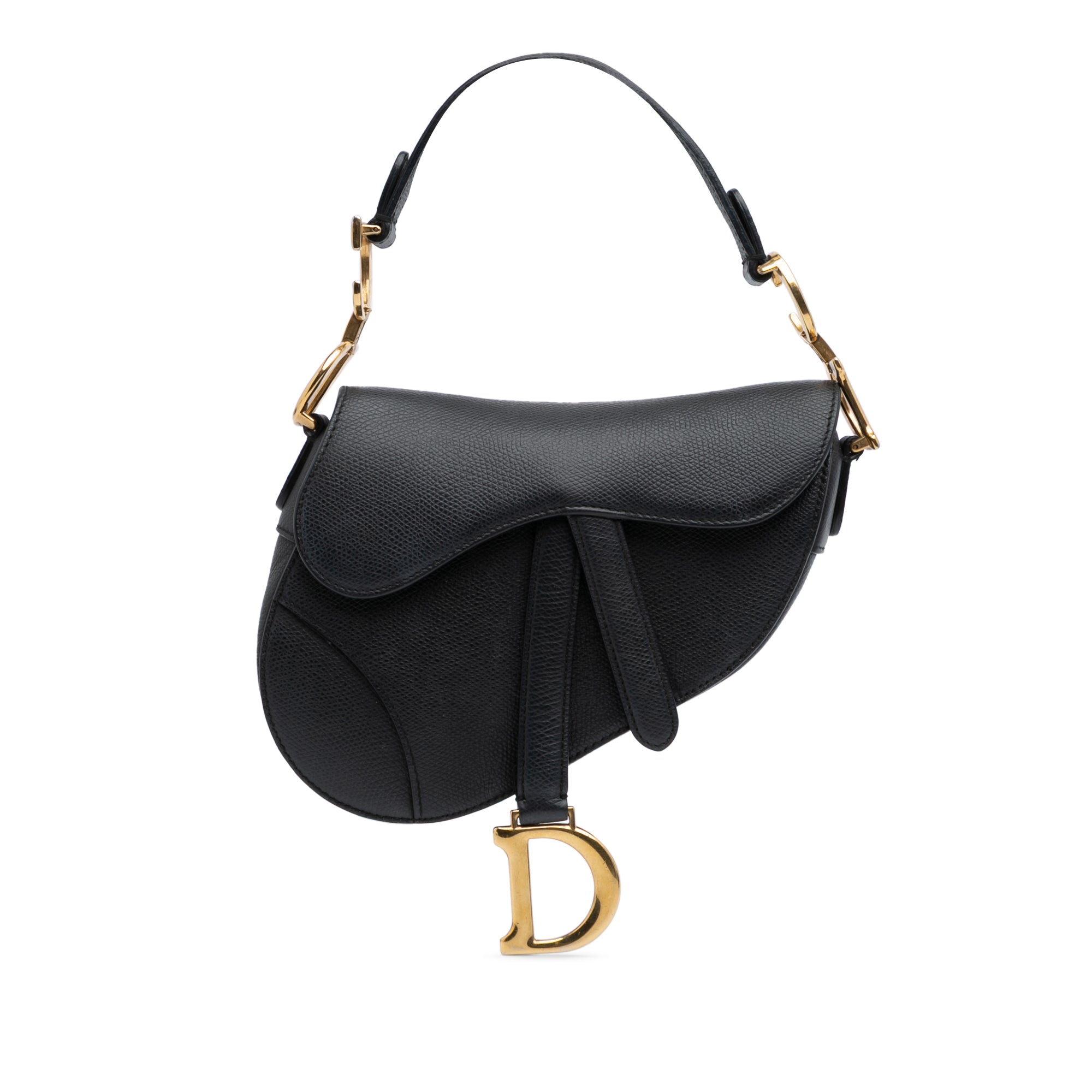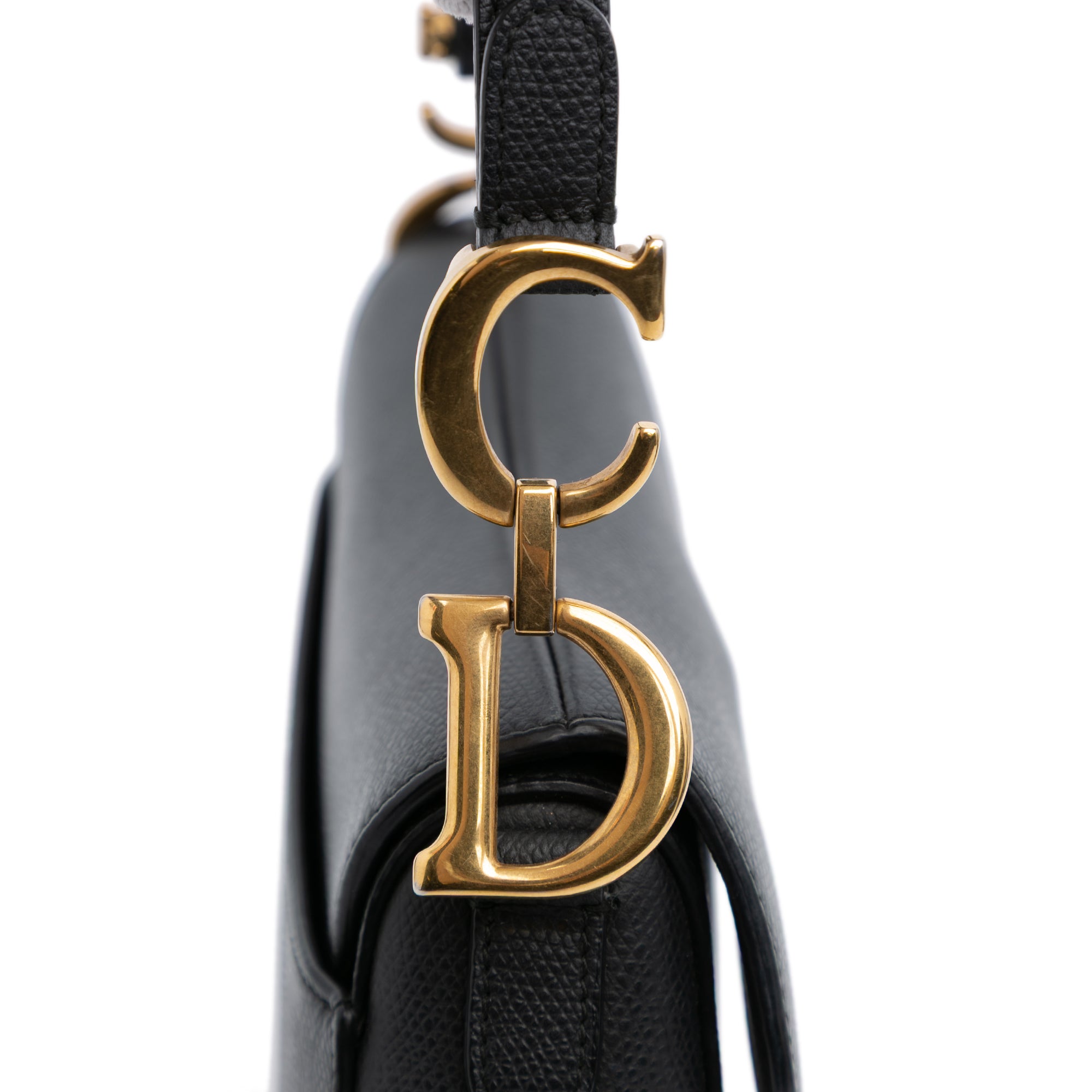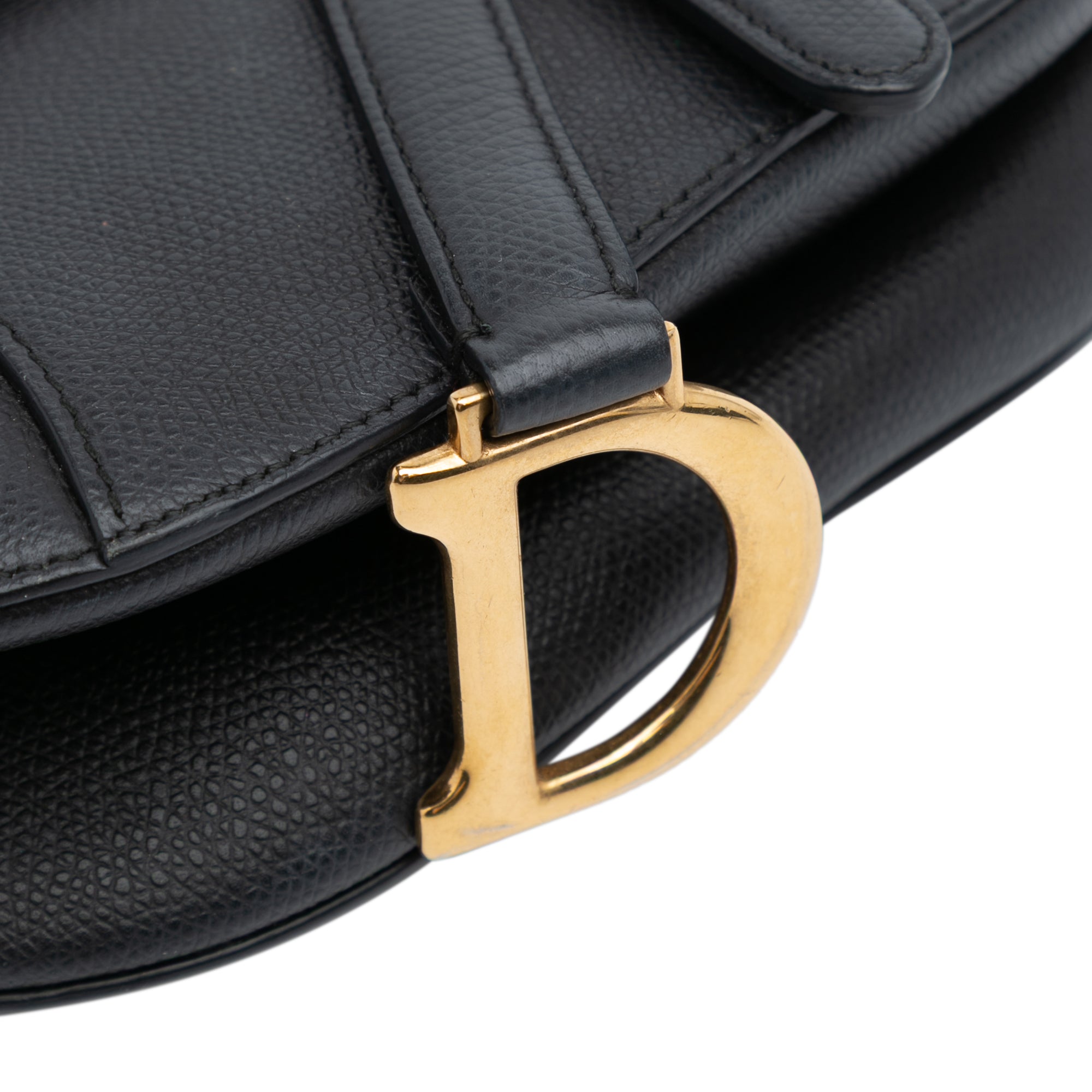 The Saddle features a leather body, a flat leather strap with CD hardware, a front flap, leather tabs with the D charm, and an interior slip pocket. Retail Price: 3900.00