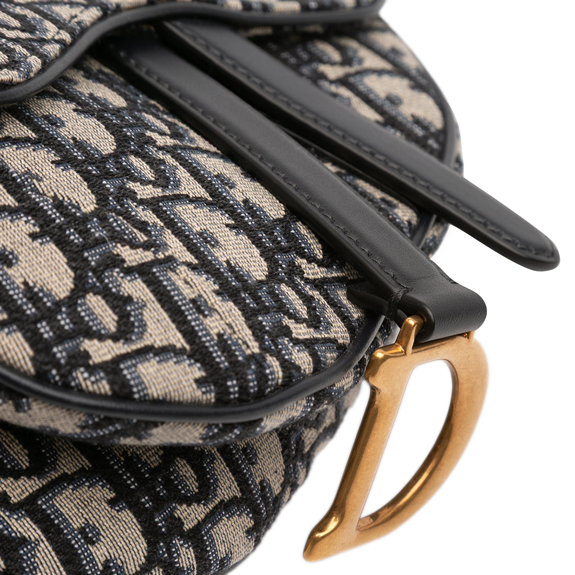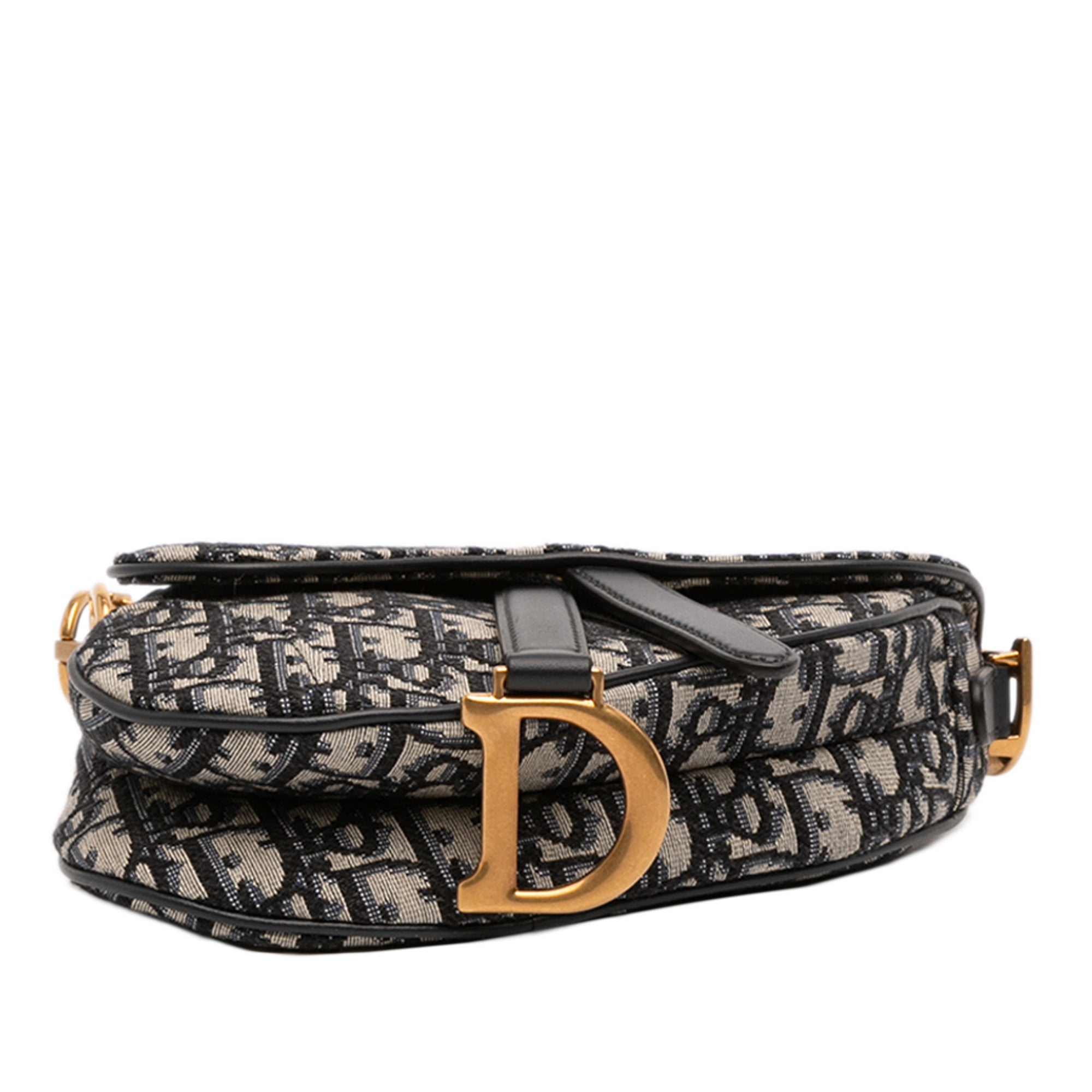 The Saddle features a canvas body with leather trim, a flat leather handle, a front flap with touch fastener closure, and an interior zip pocket. Inclusion: Dust bag. Retail Price: 3700.00