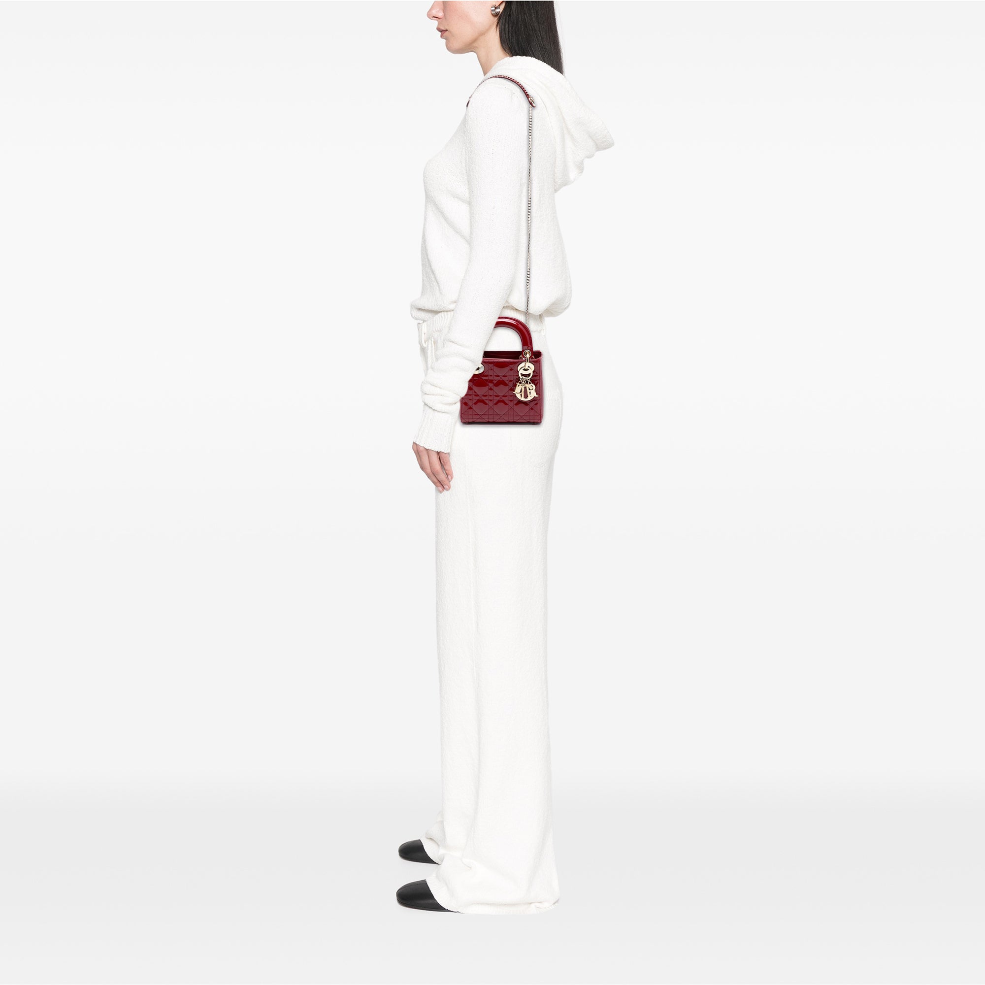 The Lady Dior features a quilted patent leather body, flat top handles, a detachable flat leather strap, a flap closure, and an interior zip pocket. Inclusion: box, authenticity card. Retail Price: 5300.00