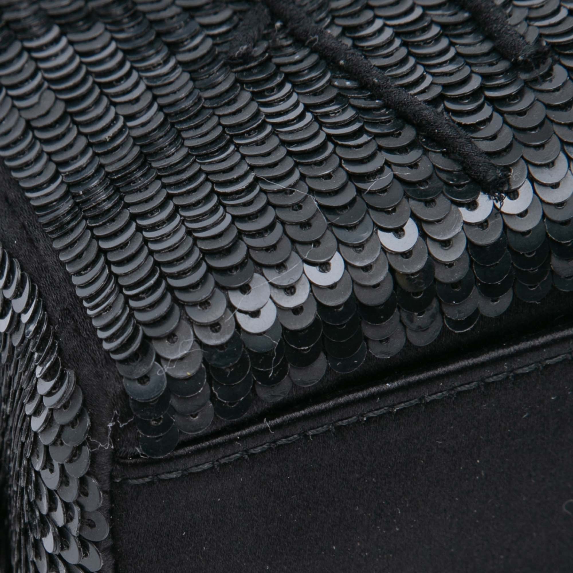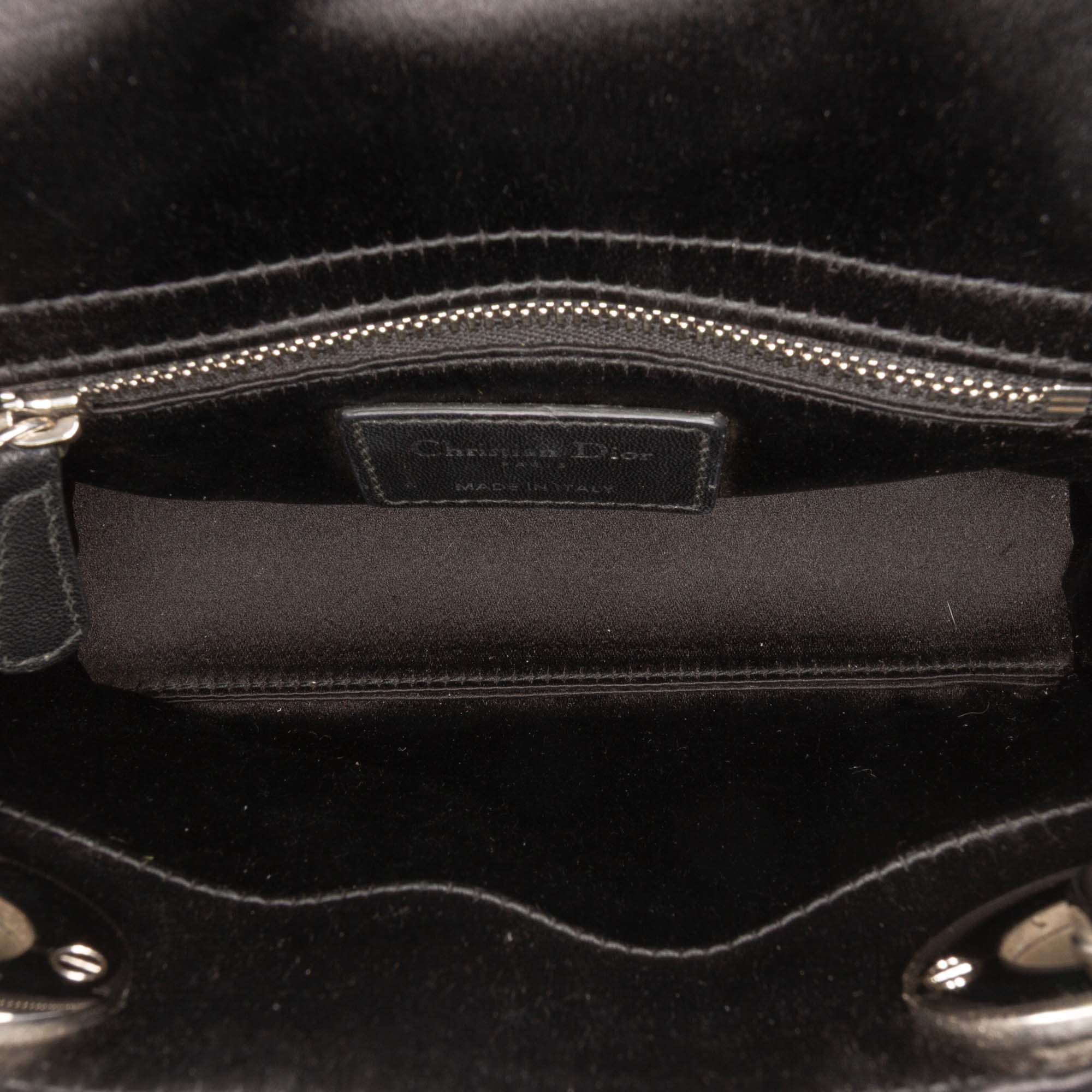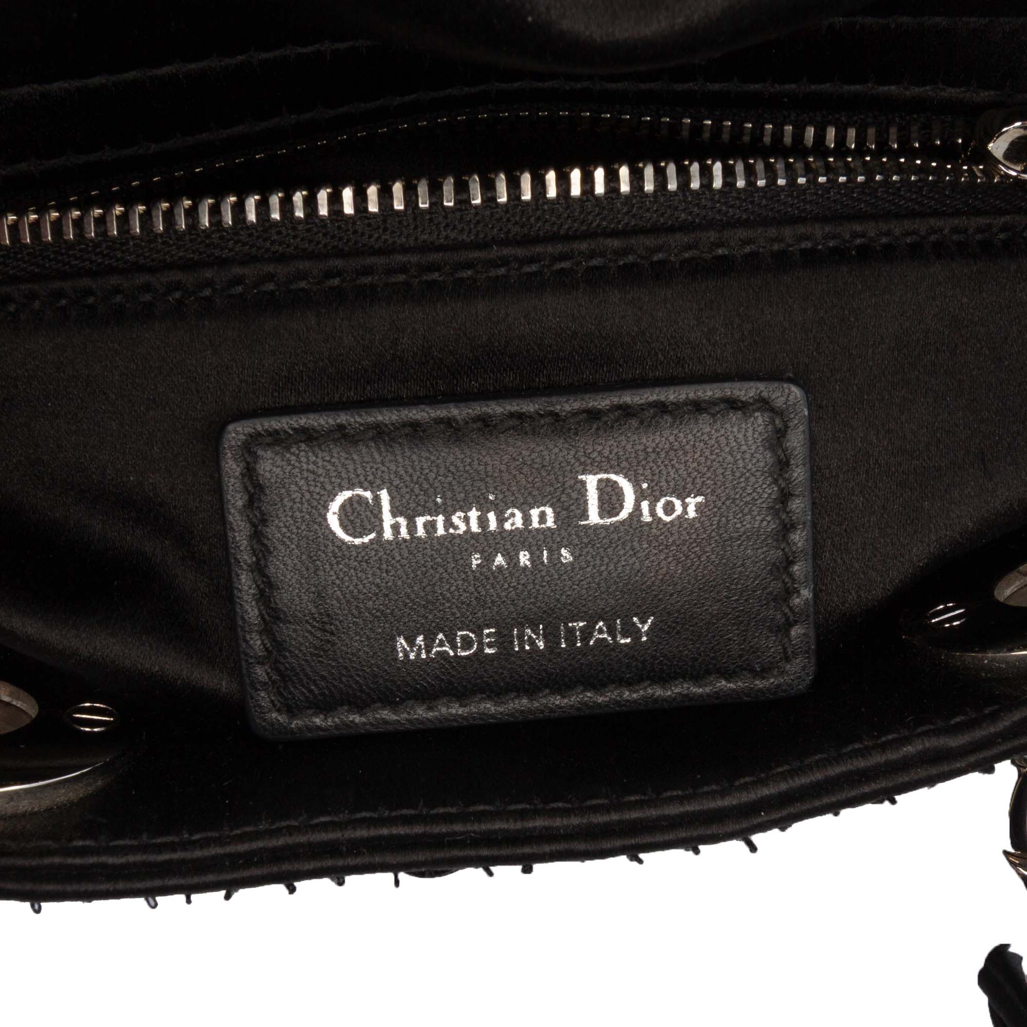 The Lady Dior features a sequin-embellished satin body, flat leather handles, a detachable flat leather strap, a fold in flap closure, and an interior zip pocket. Inclusion: authenticity card. Retail Price: 6900.00