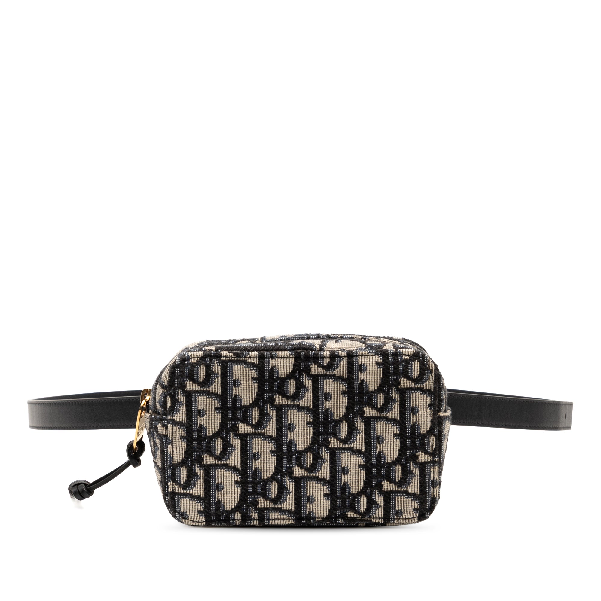 This belt bag features a canvas body, an adjustable flat leather waist strap, and top zip closure. Retail Price: 1900.00