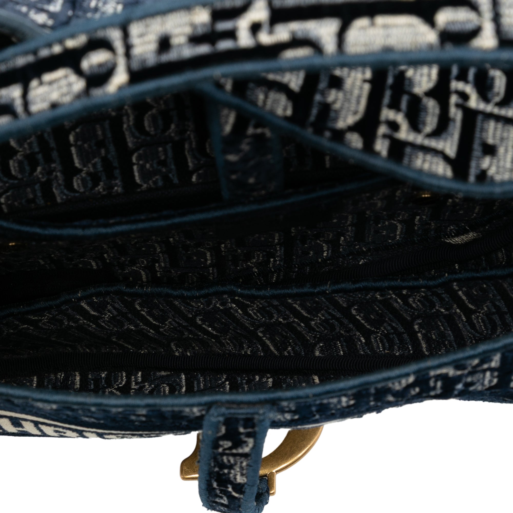 The Saddle features an embroidered velvet body, a flat handle, a detachable strap, a flap closure, an exterior back slip pocket, and an interior slip pocket. Retail Price: 3700.00