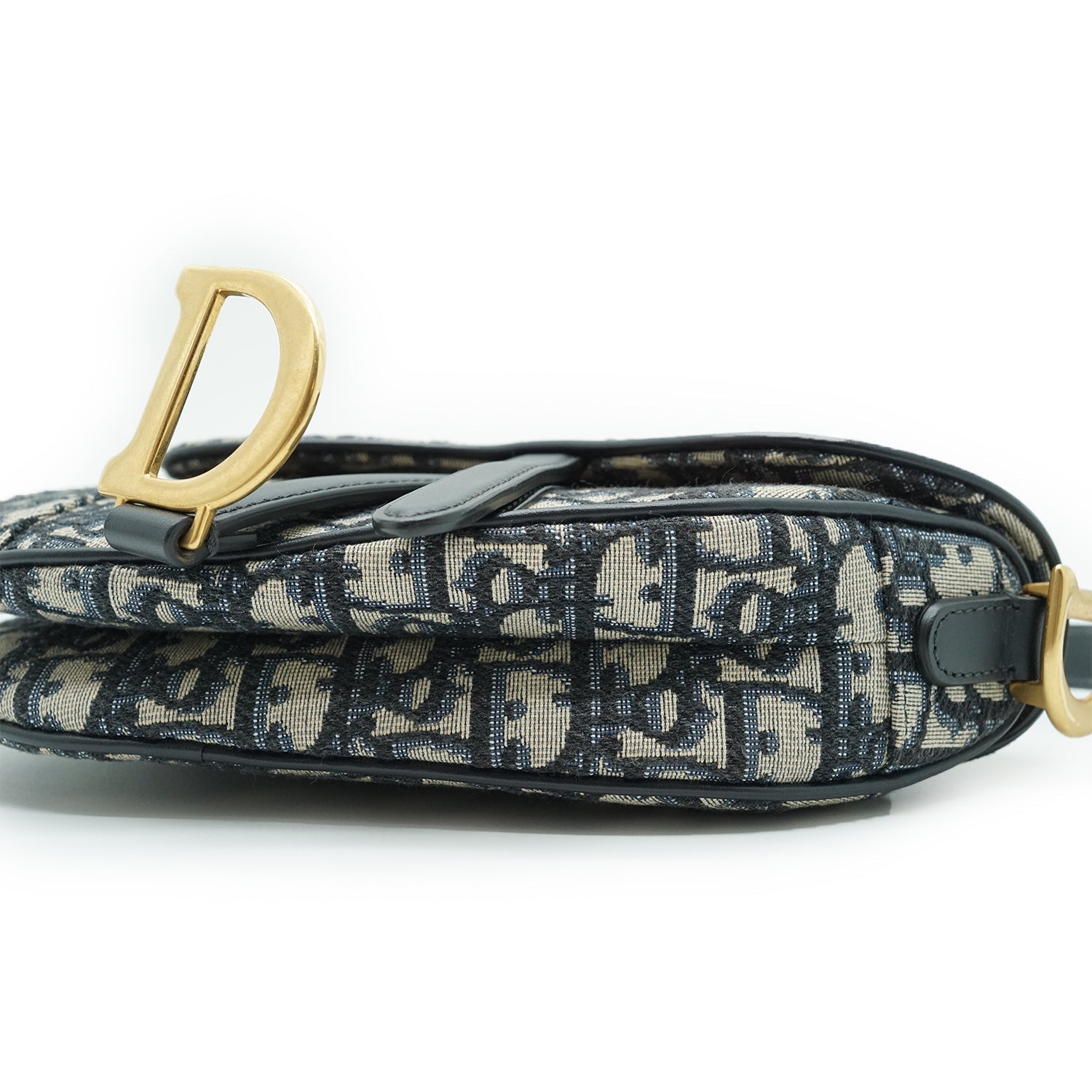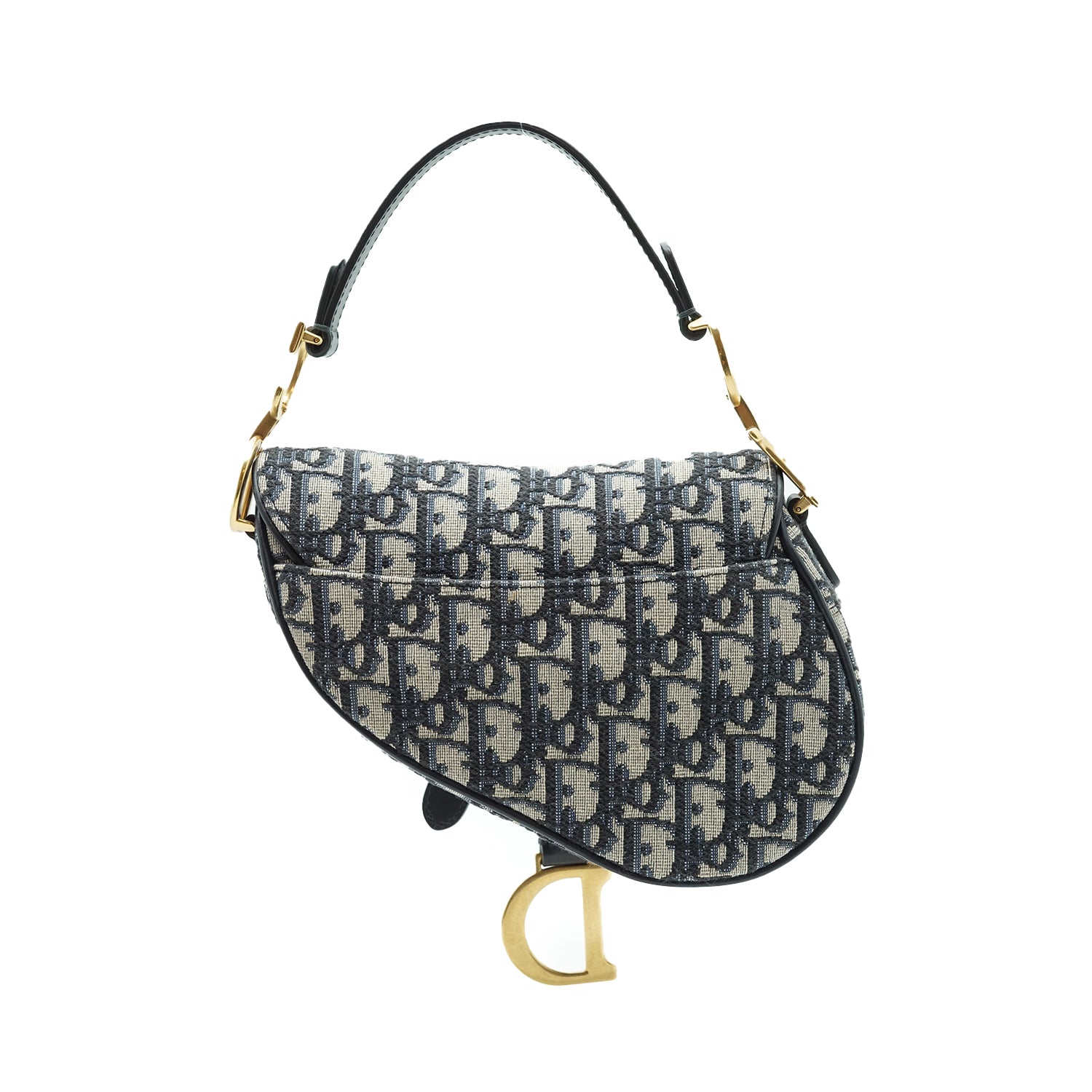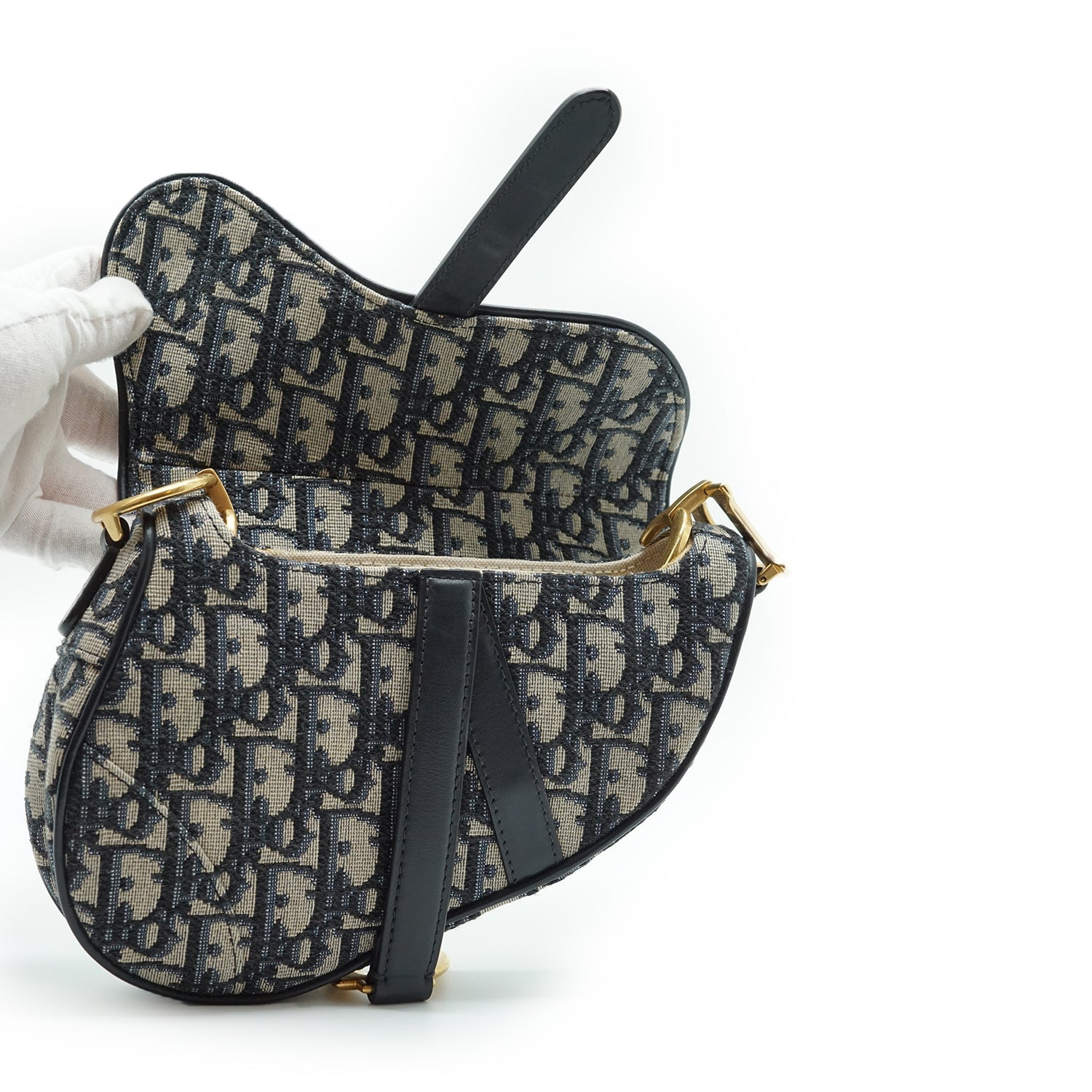 Oblique Jacquard Mini Saddle Bag Navy Canvas, LeatherDepth: 6cmHeight: 15cmWidth: 18cmHand Drop: 12cmStain: Minor brown stains on the inside fabricDiscoloration: Some hardware tarnishScratch: Noticeable scratches/rubbing on the hardwareTear: Minor tear on the inside (stitch undone)Include: Dust bagSerial code: 05-RU-0220