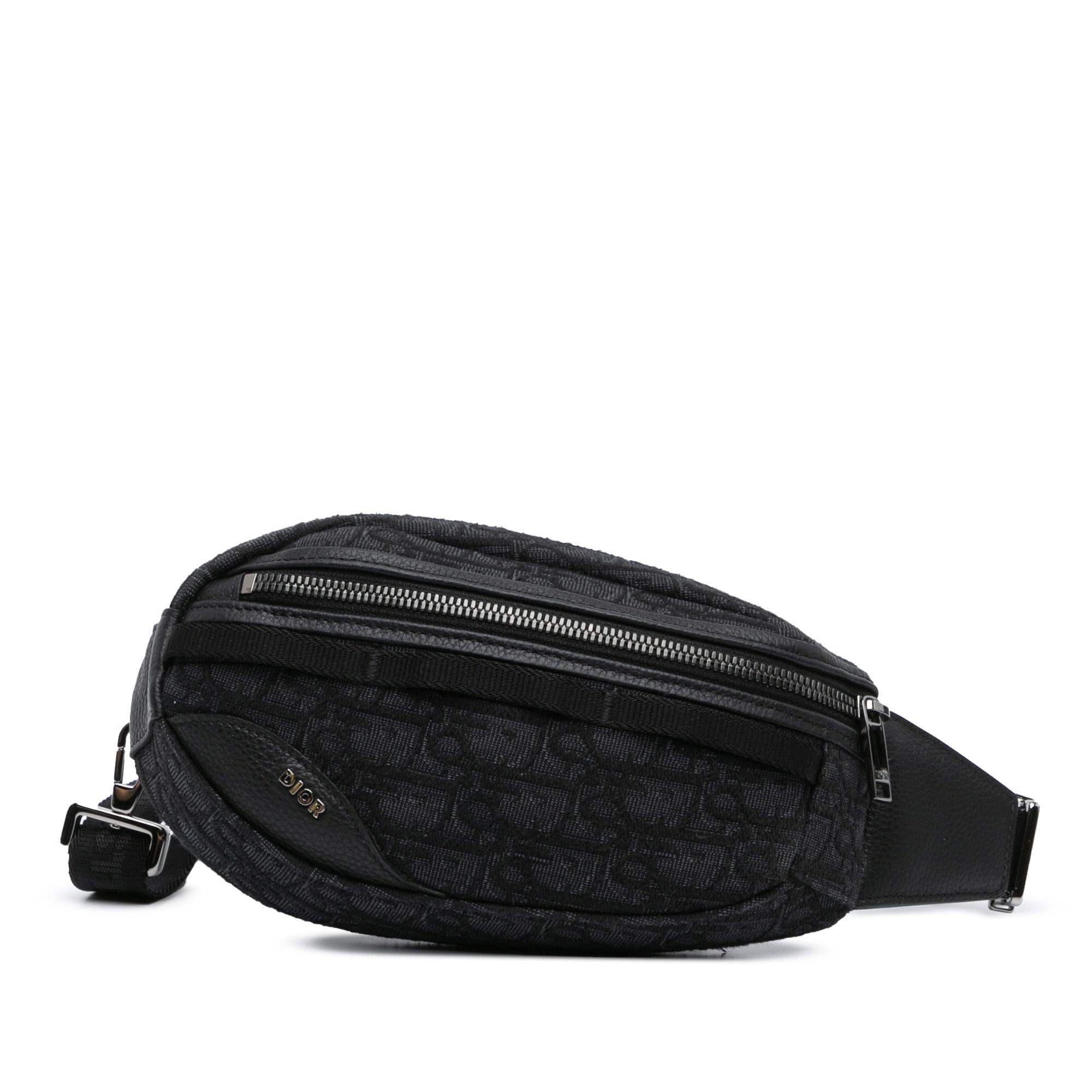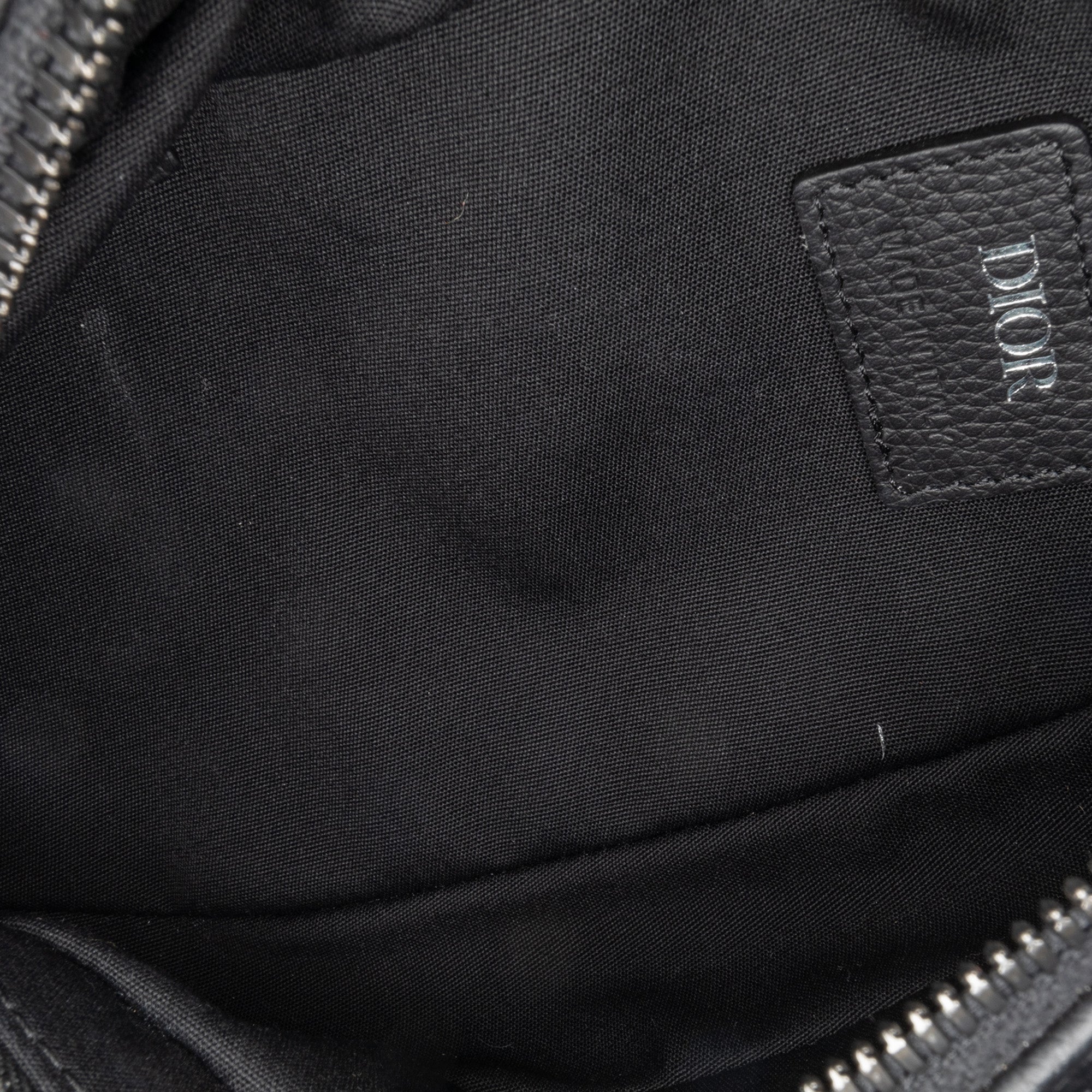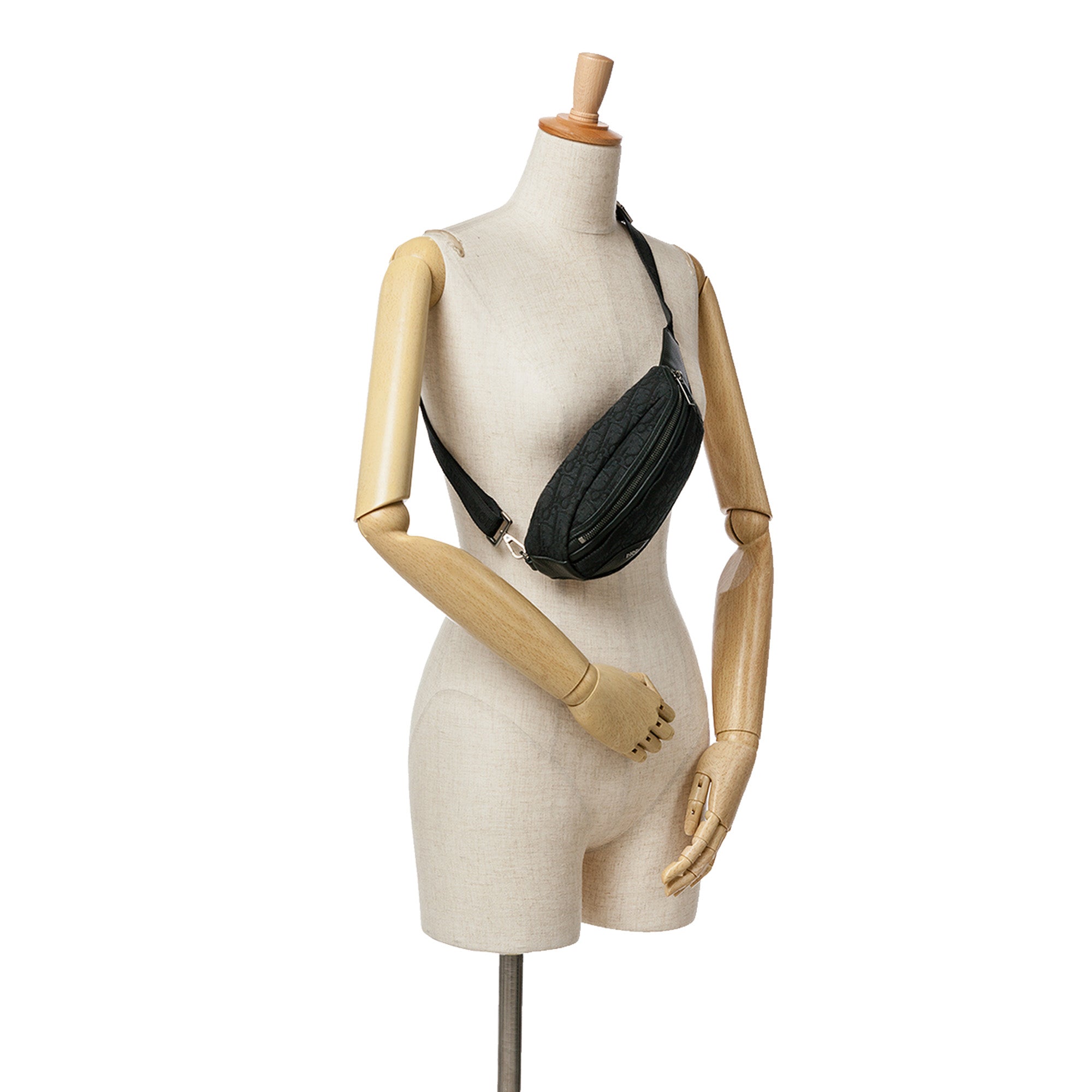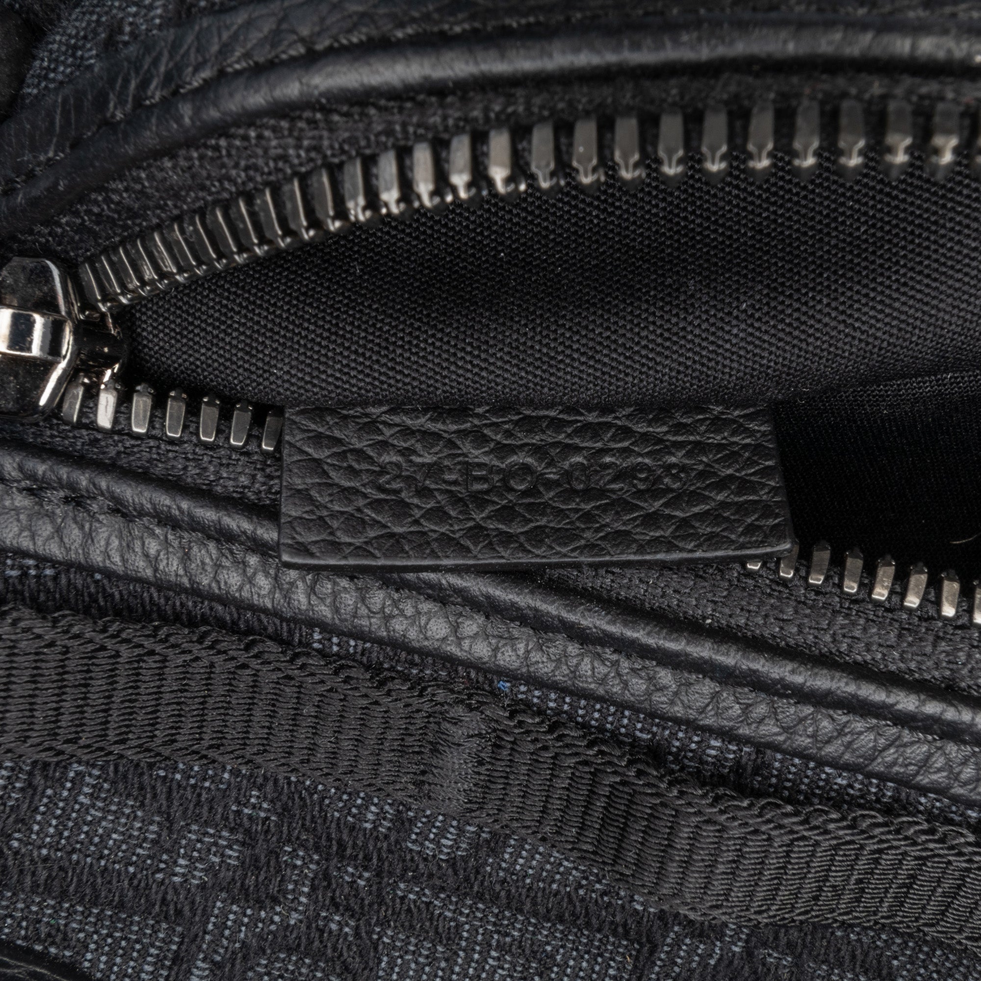 This crossbody features a canvas body with leather trim, flat strap, and a front zip closure. Retail Price: 2500.00