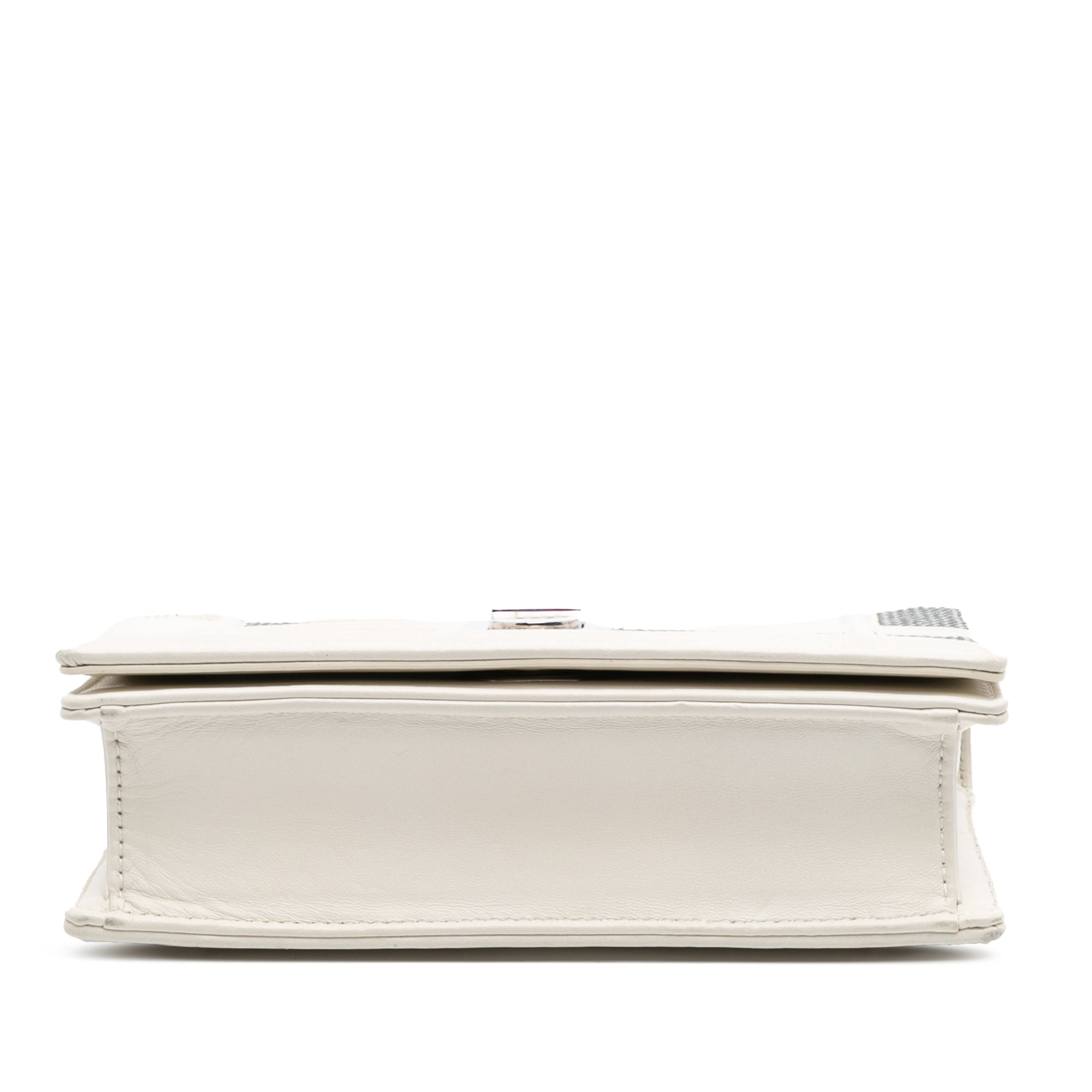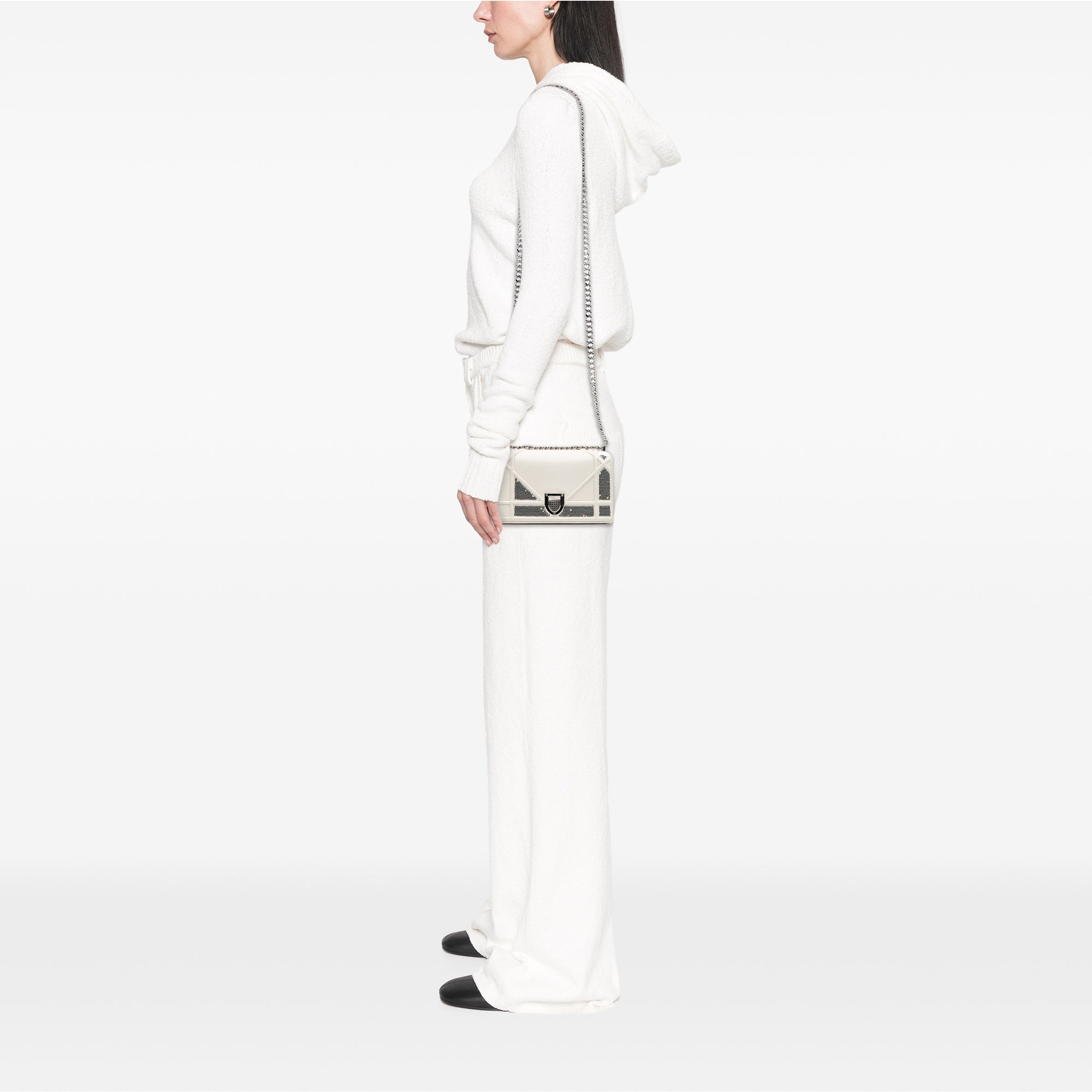The Diorama features a leather body with sequin details, a silver-tone curb chain link shoulder strap, detachable chain link shoulder strap, a front flap with magnetic snap closure, and an interior slip pocket. Retail Price: 3700.00