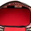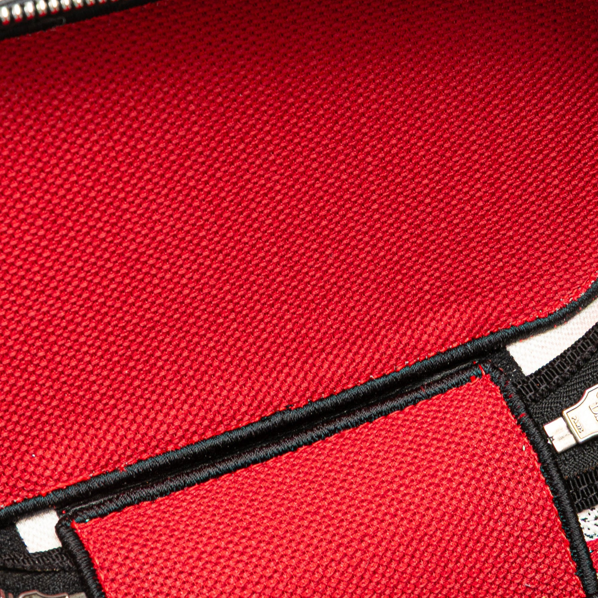 This vanity bag features an embroidered canvas body, a flat top handle, a detachable flat strap, a zip around closure, and an interior slip pocket. Retail Price: 2970.00