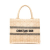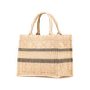 The Book Tote features a woven raffia body, rolled handles, and an open top. Inclusion: authenticity card. Retail Price: 3400.00