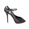 Elevate your style with these Vintage Dior Python Leather Heels. Crafted from grey python-embossed leather and suede, these pumps feature peep toes, a buckle ankle fastening, and low platforms for an effortlessly chic look. The silver tone buckle with hanging D charm adds a touch of sophistication.