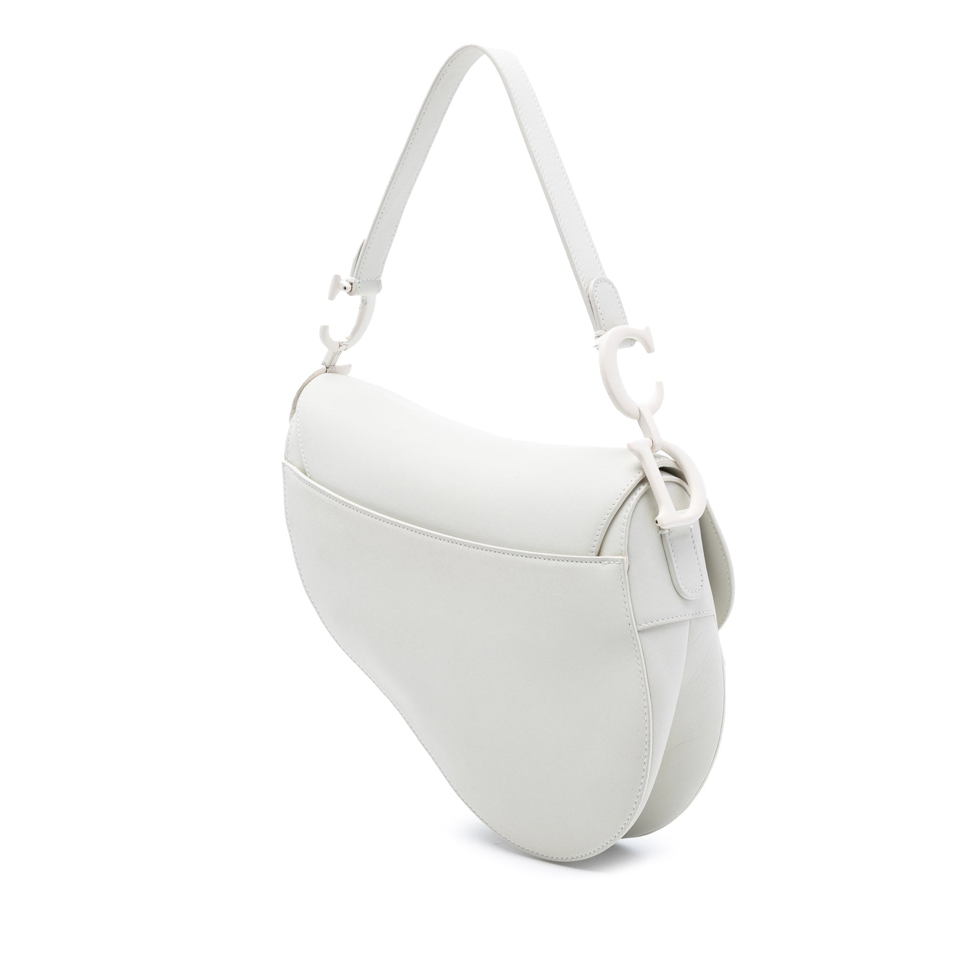 The Saddle bag features a leather body, a flat leather shoulder strap, a front flap with a magnetic closure, an exterior back slip pocket, and an interior zip pocket. Inclusion: Dust bag. Retail Price: 4260.00